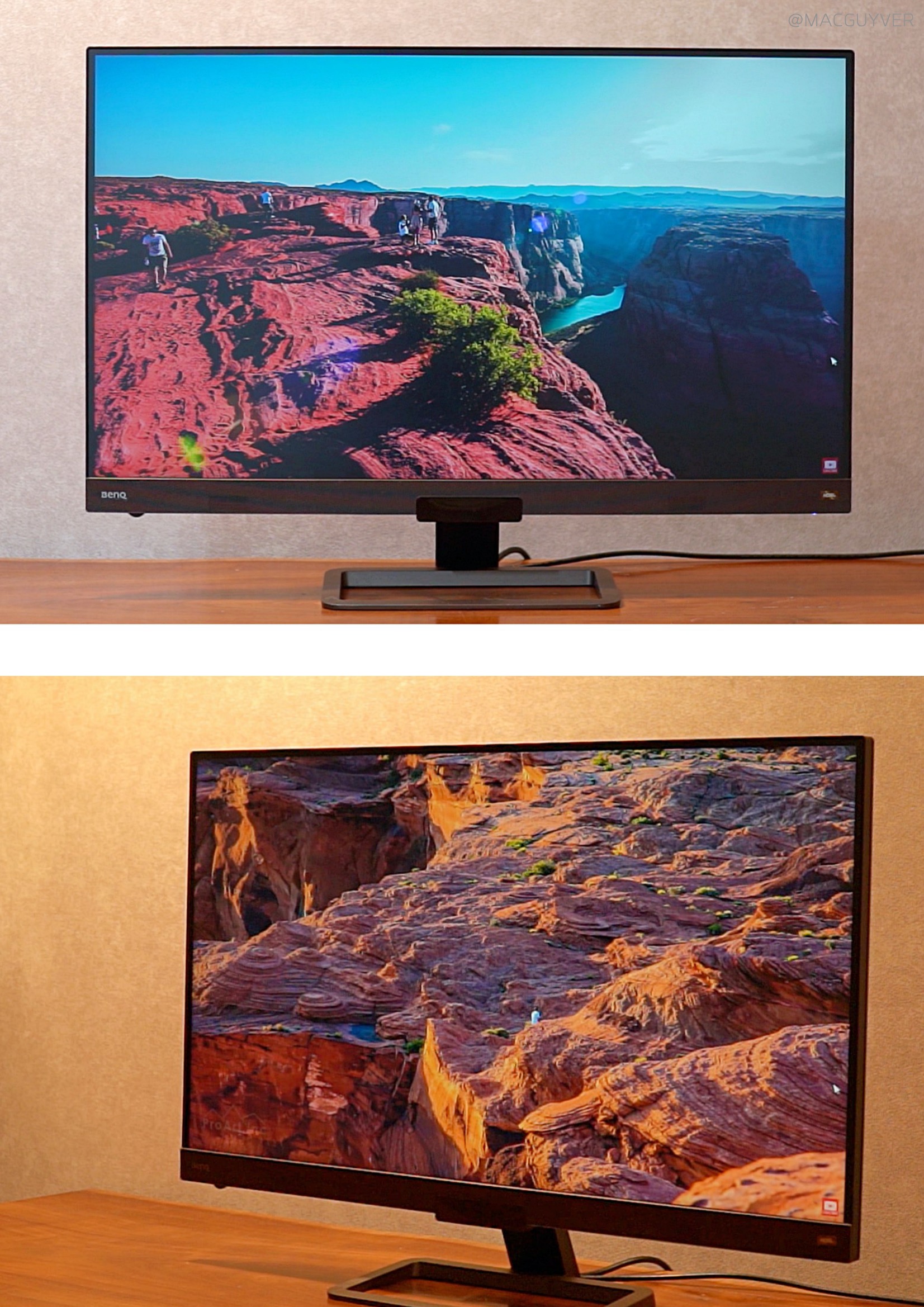 화면이 좋다고 생각되는 부분은 확실히 안으로 들어가지 않고 표면까지 말끔하게 표현되는 부분이었어요. 슬림한 베젤까지 더하자면 몰입감을 제대로 더해주는거죠. 벤큐 4K 모니터 노트북과 비교를 해보자면 차이가 뚜렷한데요. 정면에서 보더라도 밝기나 색감, 표현력과 해상력이 다른데 측면에서 볼 경우에도 차이가 확실하니까 전천후로 쓰기에 만족스럽더라고요. 시력보호 모니터 추가적으로 색 표현력이 매우 뛰어나다는 QLED 탑재 노트북과 비교를 해봐도 색상 표현이 전혀 부족하지 않았는데요. HDR 모니터 최대 밝기는 노트북이 조금 더 뛰어났지만, 확실히 이번에도 측면에서 볼 때 표현력 차이가 두드러지는 장점이 느껴지기도 했습니다. 게임용 모니터 또한 4K 모니터라서 얻을 수 있는 장점이라면 확실히 가까이서 보더라도 전혀 깨지지 않는다는 점이거든요. 벤큐 모니터 단지 화면만 큰게 아니라 이 넓은 화면을 고르게 뛰어난 화면을 보여주면서 디테일이 살아있고 표현을 제대로 해주니까 만족스러운거죠. 게임용 모니터 요즘에는 4K 컨텐츠도 많아져서 확실히 BenQ EW3280U 모니터로 얻을 수 있는 장점이 많을 것 같기도 합니다. 개인적으로는 4K 영상 편집을 하거나 FHD 영상을 좌우로 동시에 재생하면서 편집할때도 유용하더라고요.