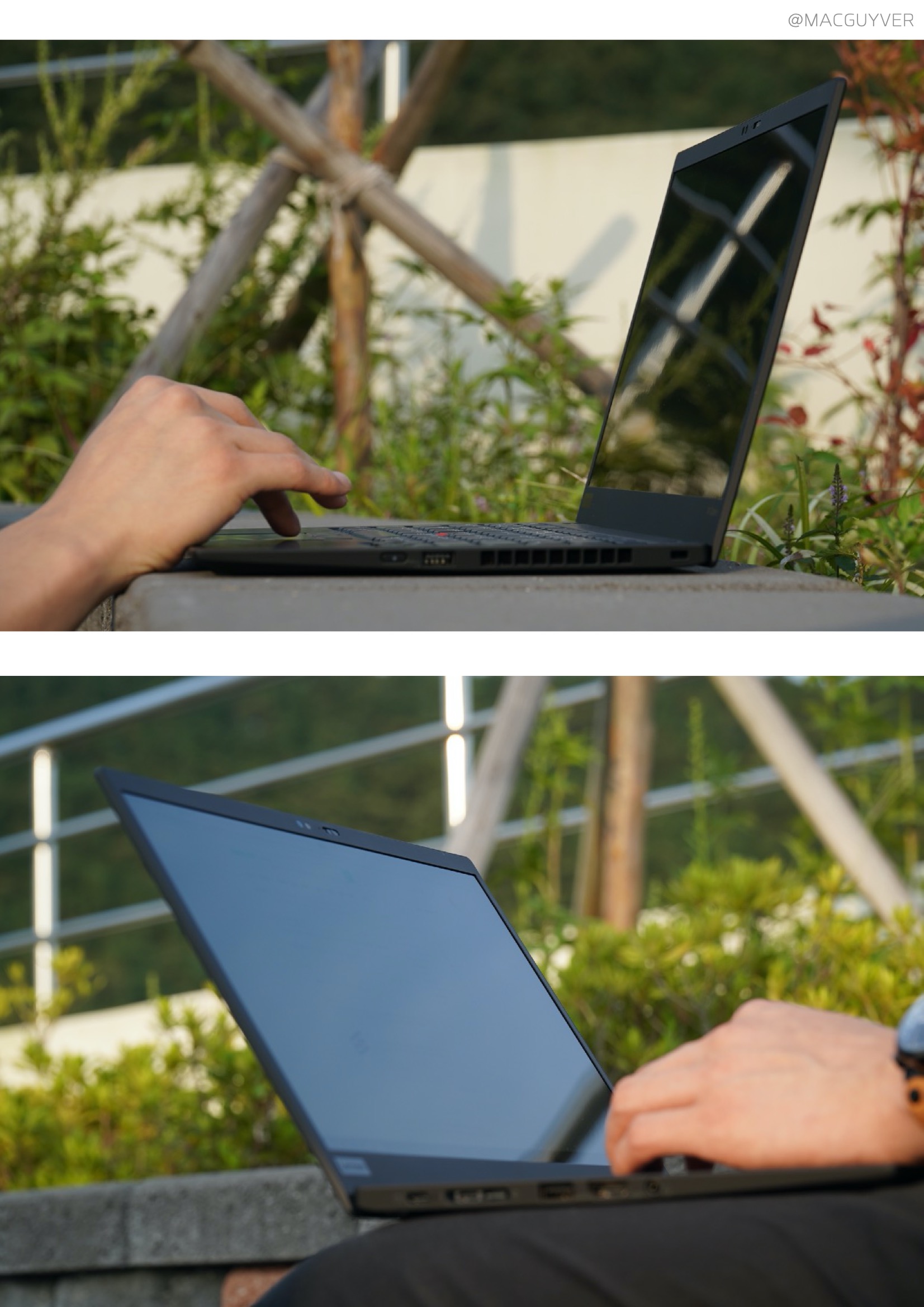 씽크패드 X1 카본 8세대의 2번째 리뷰를 이어서 진행해볼게요. 이전 리뷰에선 이 비즈니스 노트북의 화면, 성능, 키보드, 스피커, 디자인에 대해 다뤘는데요. 이전 리뷰 요약 *돈값하는 화면 만족도 *아쉬운 가격 대비 스펙 *만족스러운 체감 반응속도 *씽크패드다운 조작성과 생산성 *확실하게 느껴지는 내구성 *시작부터 체감되는 LTE의 편의성 이번엔 야외 사용성에 특화된 이 옵션의 화면 밝기, 퍼포먼스, 배터리를 체크해보고 씽크패드 X1에 옵션을 추가할 가치가 있는지 알아볼게요. 추가 옵션별 가격 *i5 -> i7 :: 20.4만원 *윈도10 홈 -> 프로 :: 7.9만원 *MS 개인 :: 8.9만원 *8GB -> 16GB :: 0원 *256GB -> 512GB :: 5.8만원 *우븐 재질 :: 6.5만원 *RJ 확장커넥터 :: 1.6만원 *LTE :: 11.3만원 *4K 500Nits 돌비비전 :: 27만원