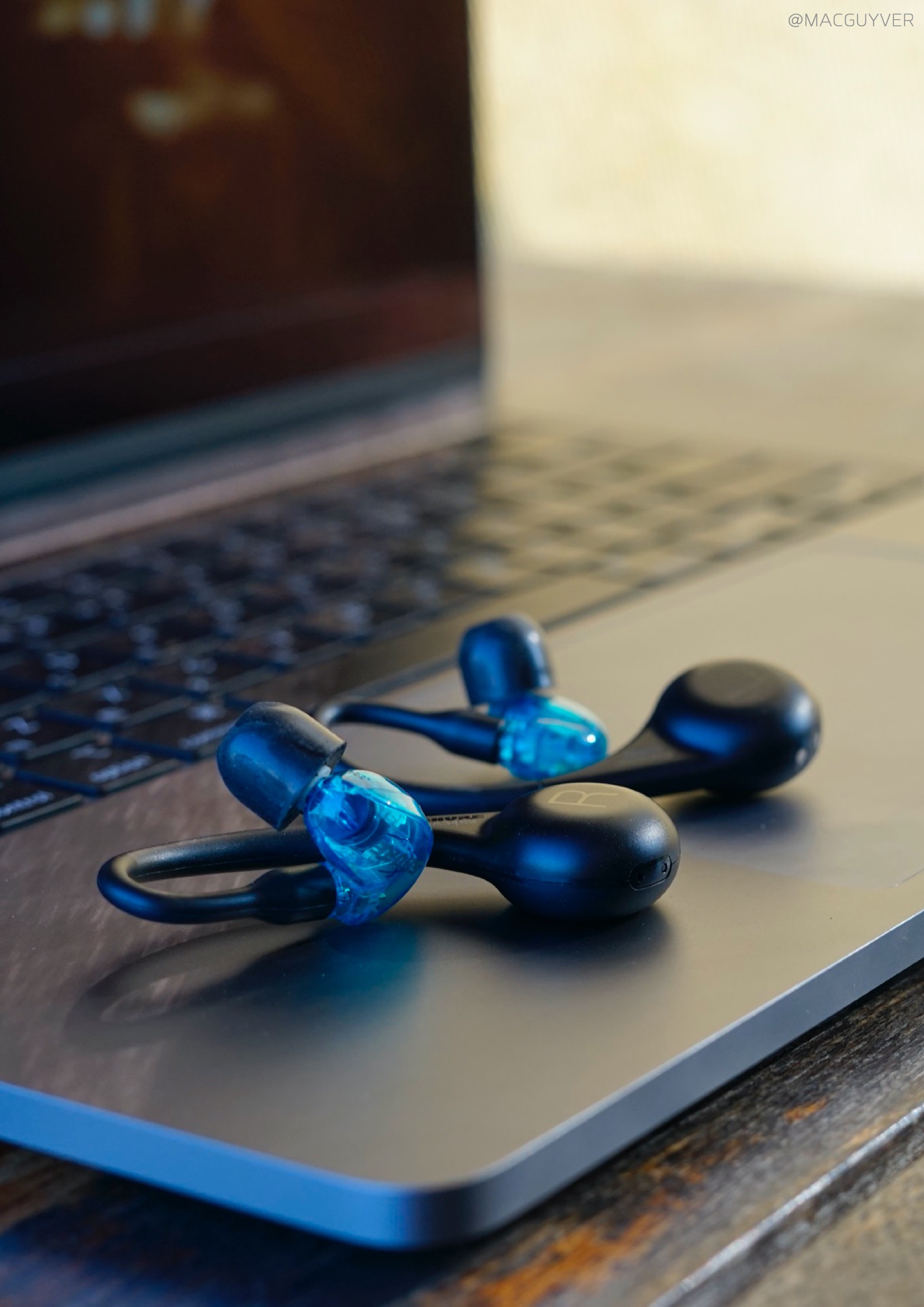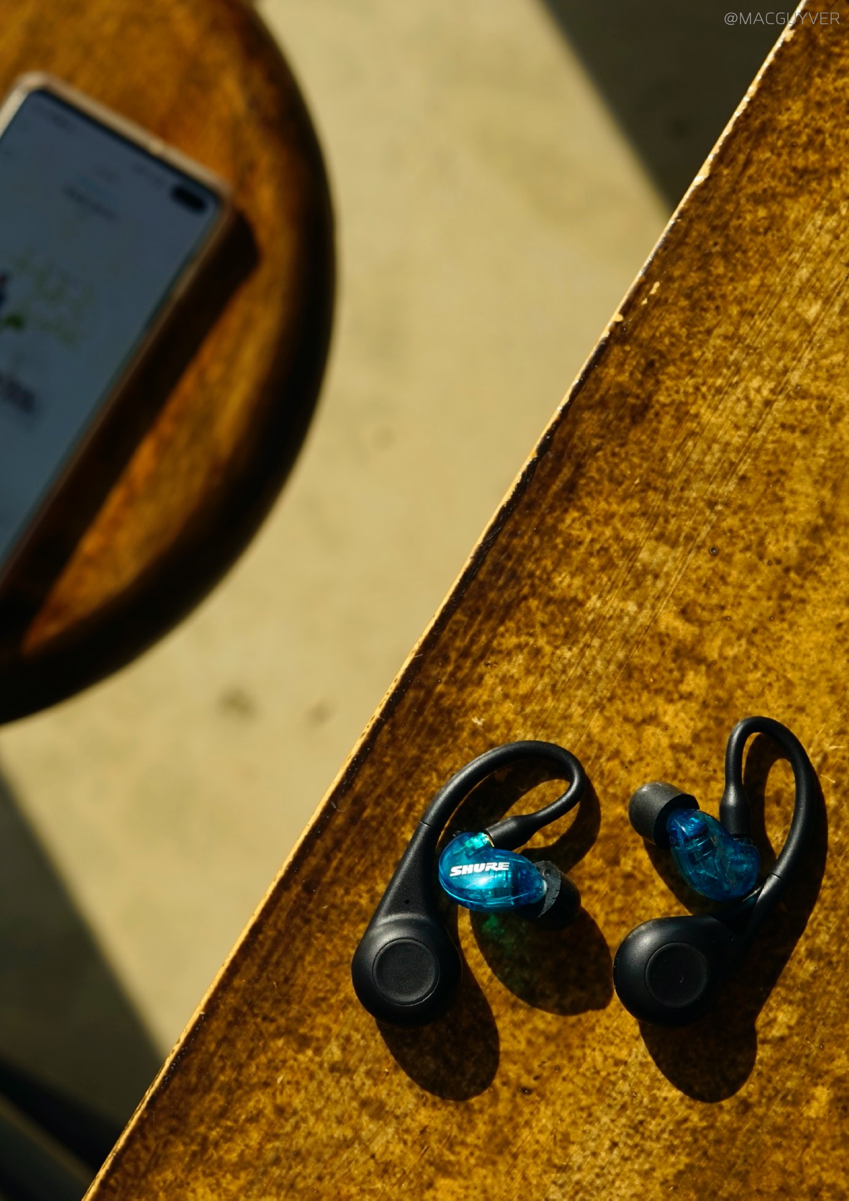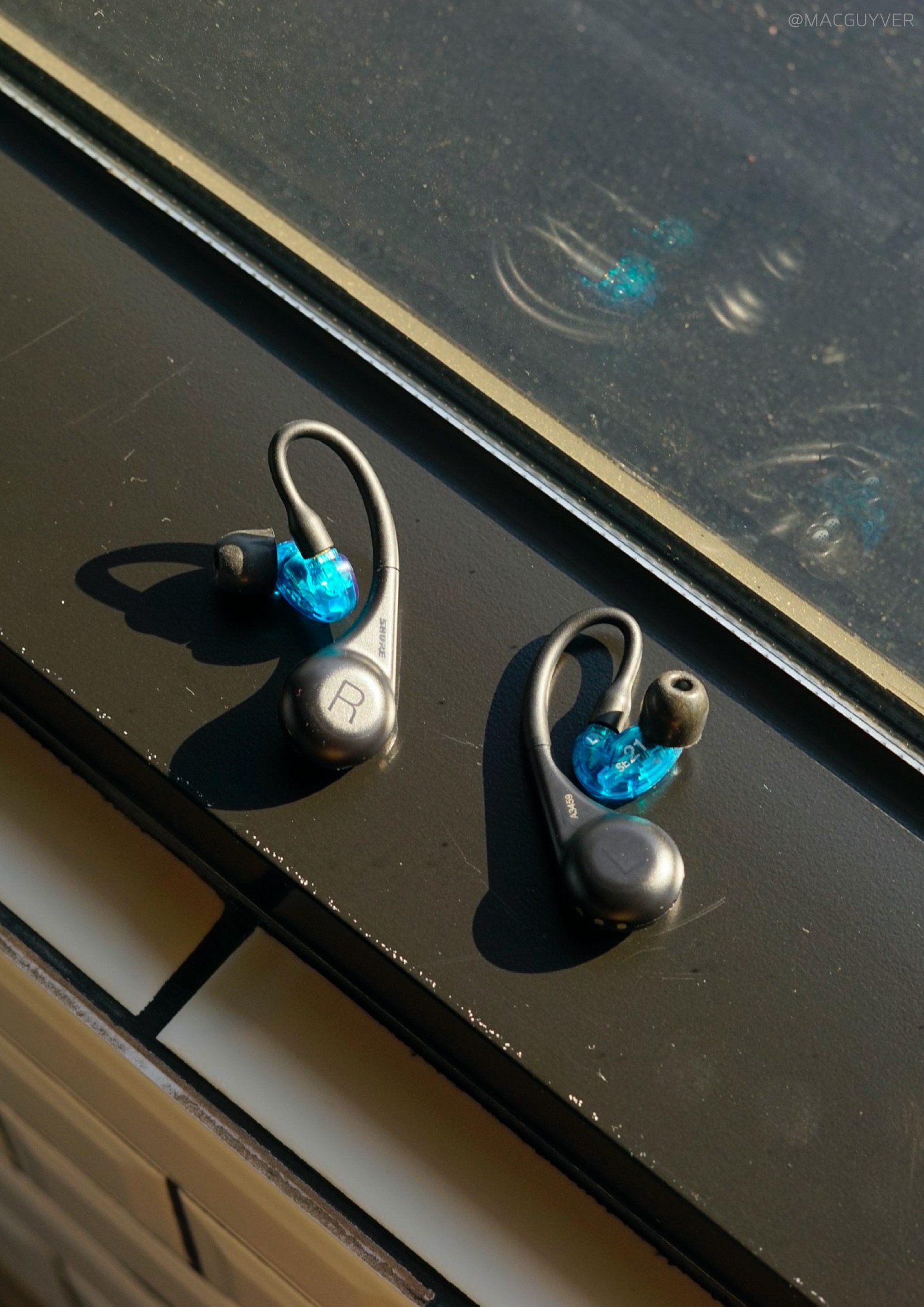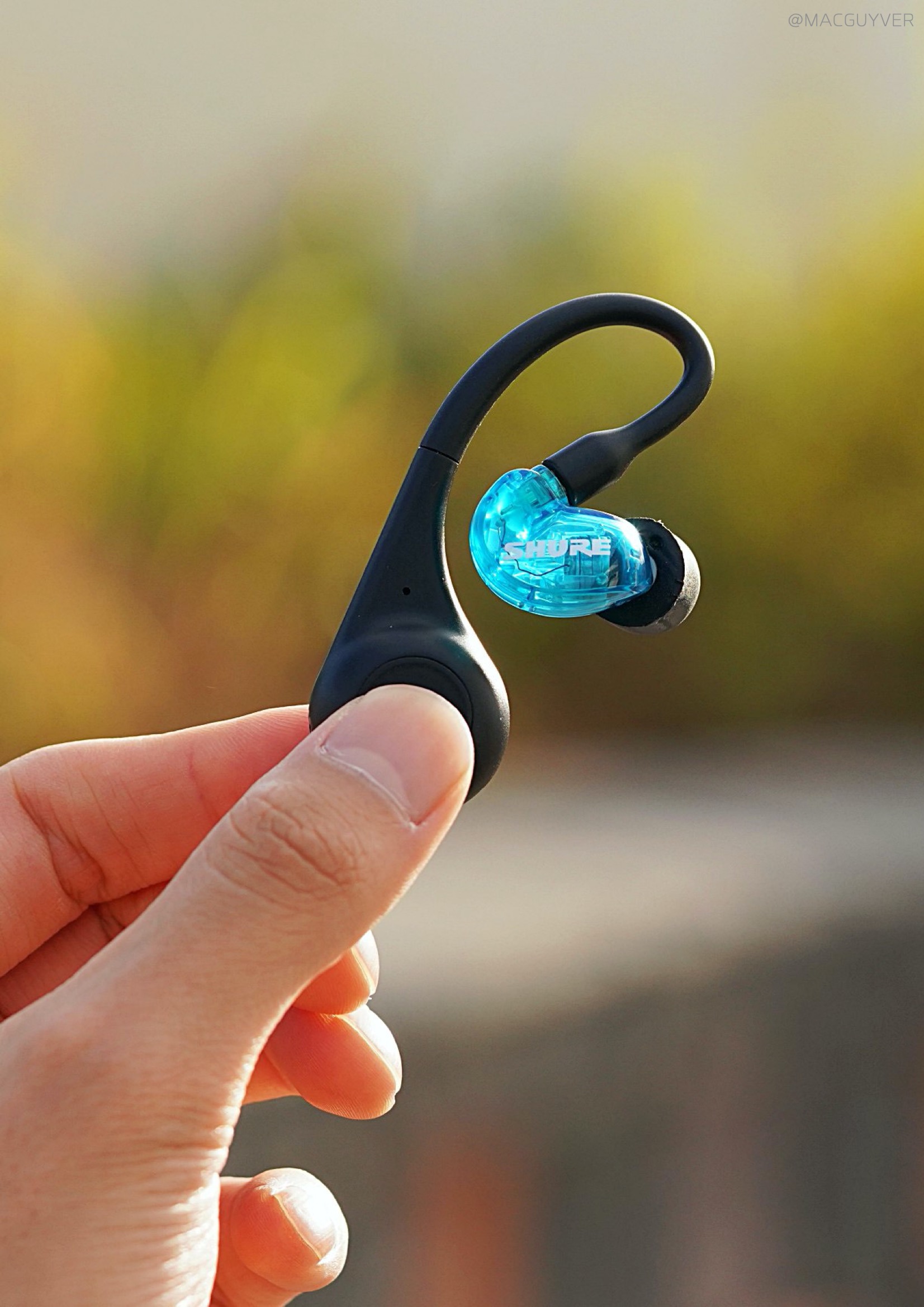 착용감 :: 그렇게 계속 이어폰을 꽂고 있으려면 착용감이 좋아야하죠. 이 슈어 모니터링 이어폰은 밀착감이 되게 좋아요. 그리고 다른 커널형처럼 귓속 깊이 들어가는 형태가 아니라 귓바퀴에 고정되는 형태고, 또 작고 가벼워서 편안해요. 정말 편합니다. 밀착감과 차음성이 정말 좋은데도 귀에 압박이 전혀 없어요. 그리고 코드리스 모듈이 무게중심이 잘 잡혀있어서 더 가볍게 느껴집니다. 보통 이런 오버이어 무선 이어폰은 바깥쪽으로 커다랗게 나와서 불안하게 느껴지곤 하는데, 이 슈어 이어폰은 디자인은 조금 보청기 같아도 착용감은 진짜 안정적입니다. 일반 인이어 완전무선 이어폰과 비교해도더 편안하고 안정적이에요. 참고로 오버이어 타입은 처음 착용할 때 진짜 어색하거든요. 이어버드를 먼저 귀에 넣고 이어가이드를 뒤로 넘겨주시면 쉽게 착용하실 수 있을거에요.