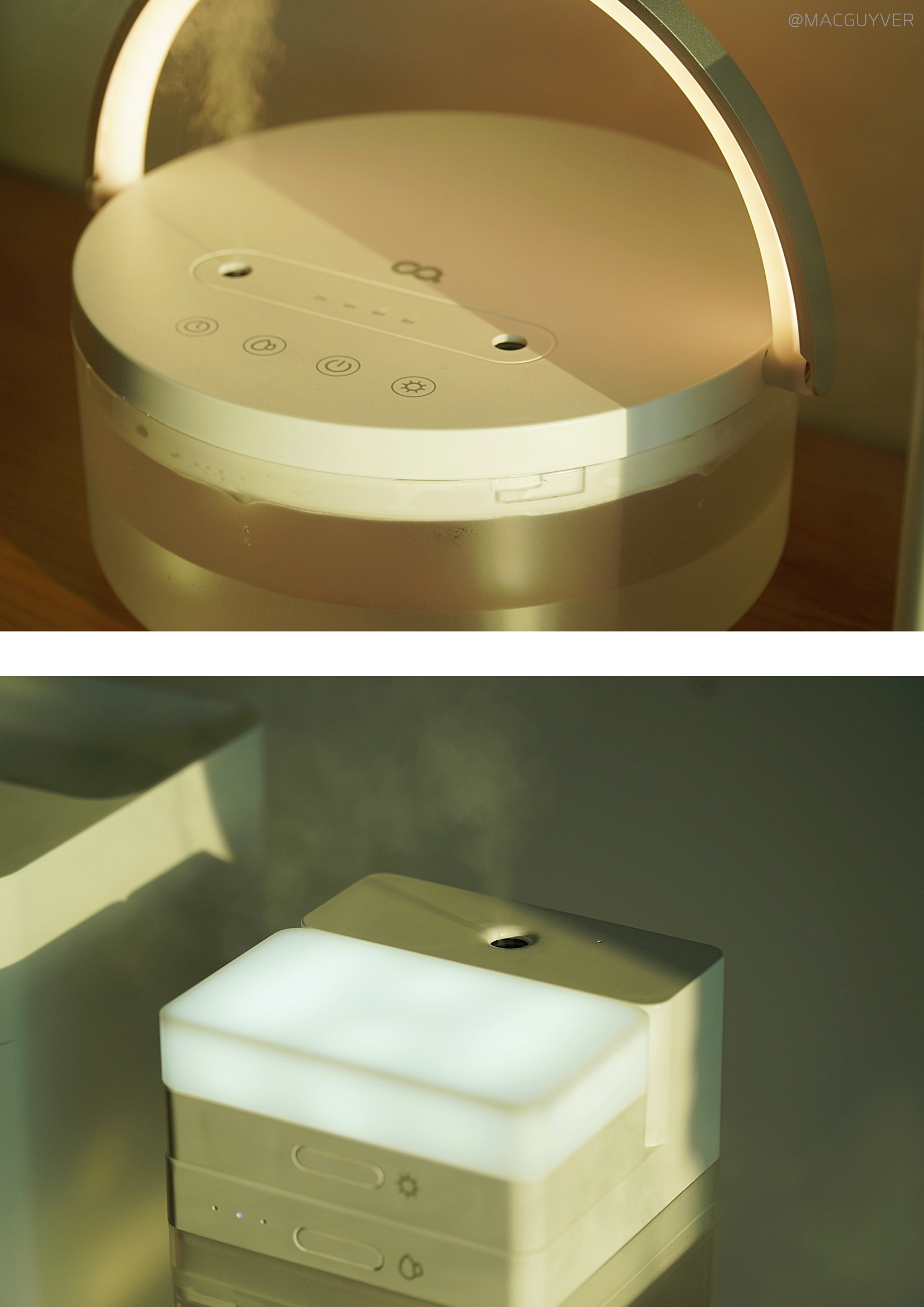 오아 센스 V2 가습기는 모듈형이라는 독특함을 가지고 있는데요. 물리 버튼으로 누르는 방식이라 조금 더 명확하고, LED가 흰색 혹은 주황색으로 바뀌니까 원하는 컬러로 선택할 수도 있더라고요. 무선 가습기가 층층이 쌓인 것처럼 보이는 모듈형 디자인이지만 복잡하지 않게 절제된 느낌도 인상적이고, 속이 잘 보여서 확인이 쉽다는 점도 장점이었습니다. 하지만 확실히 LED를 분리할 수 있다는 게 최대 장점이 아닐까 싶거든요. 원할 때 미니 가습기를 분리해서 필요한 곳을 비추는 조명으로 사용하거나 다양한 활용도 할 수 있더라고요. 물론 오아 센스 가습기를 분리할 때 접점 부분이 드러나니까 물이 묻어도 괜찮을지 걱정이 되기는 했습니다. 참고로 분리 가능한 무드 등은 마그네틱이 포함되어서 쇠로 된 곳이라면 어디든 착 붙는 장점도 가졌습니다. 분무량은 40ml 수준이니까 혼자 쓰기에 딱 적당한 편이고, 크기도 많이 차지하지 않아서 장점이 되기도 합니다.