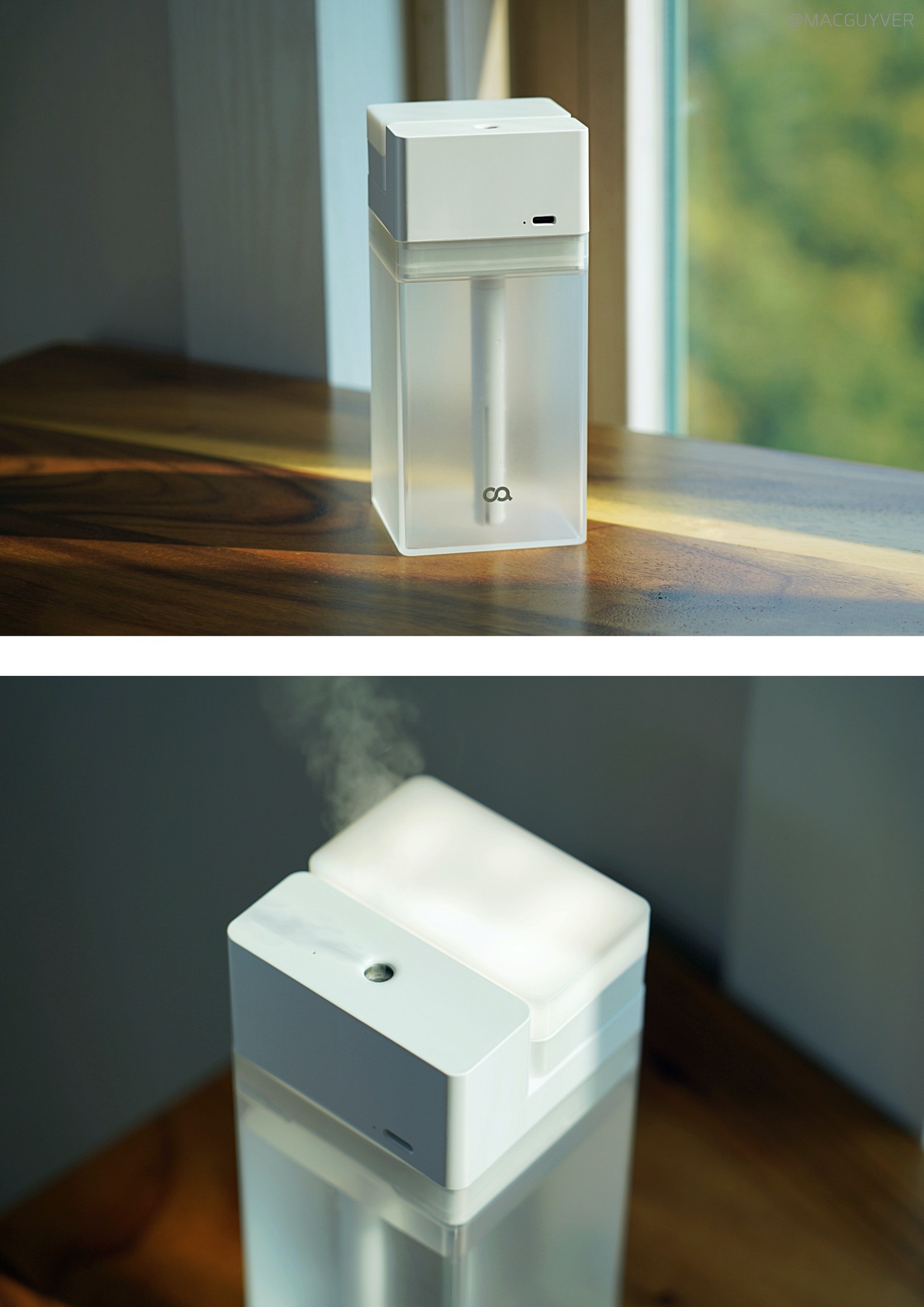 오아 센스C 가습기는 가장 작고 슬림 한데요. 한눈에 보기에도 작은 크기인데다 무게도 129g이라 정말 심플합니다. 하지만 미니 가습기 분무량은 40ml로 괜찮았고, 무드 등까지 지원해서 분위기를 바꾸는 것도 가능했는데요. 무선 가습기 수조 용량은 150ml이고, 무선 사용 시간이 3시간 정도라서 오랫동안 사용하려면 자주 채워주고 충전해 줄 필요는 있습니다. 대신, 가지고 다니면서 차량에서 사용하기에도 좋은 제품이라 운전을 오래 하시는 분들이나 겨울철에 목이 텁텁한 분들에게 항상 갖고 다니는 제품으로도 좋아 보이더라고요. 참고로 원버튼 방식이라 한 번씩 누르면서 가습만 하거나, 무드 등도 함께 사용하거나 전원을 꺼두는 방식으로 조작이 가능했습니다. 아마 어린아이를 키우는 경우에도 자기 전에 미니 가습기를 틀어두고 알아서 꺼지도록 해두는 것도 좋을 것 같습니다.