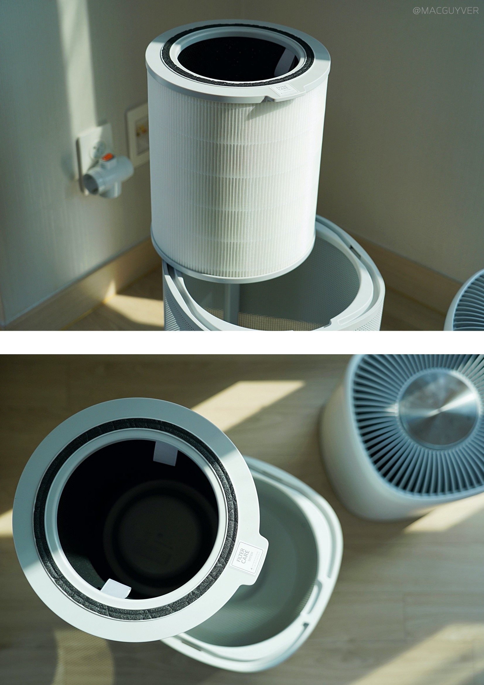 이 제품은 360도 안심 무빙휠을 가지고 있어서 편하게 이동할 수 있었는데요. 바퀴가 상당히 부드럽고 방향 전환도 쉽더라고요. 또 분리도 간단해서 상하 분리, 헤파필터 H13 필터 손잡이로 꺼내서 공기청정기 필터 분리 및 파트별 청소가 가능하니까 편리하기도 했습니다. 원룸 공기청정기 본체는 천으로 가볍게 닦아주고, 송풍구 커버는 분리해서 물 세척까지 가능한데다, 보호망이나 토탈케어 센서까지 청소가 가능하니까 꼼꼼하게 관리할 수 있는 거죠.