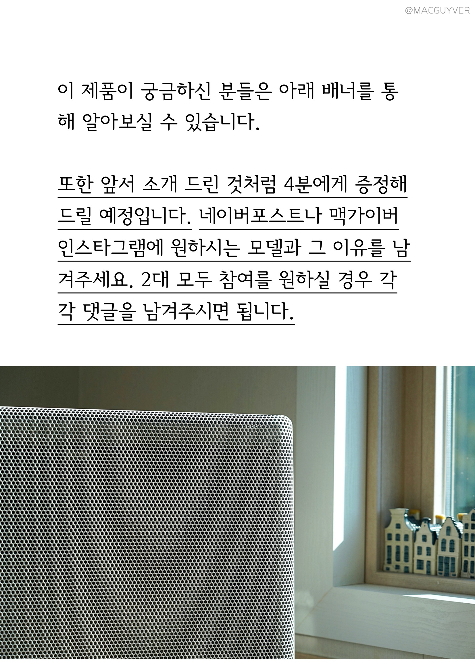 #8. 전기난방기 총평 정리 이제 마무리를 해볼까요? 발루 전기컨벡터 시리즈는 대류 방식에 효율이 99.8%로 높아서 손실 없는 발열을 경험할 수 있는 제품이었어요. 거기다 자연스러운 대류식 난방 전기히터라 공기가 건조해지지도 않고, 한 곳만 집중적으로 열을 가하지도 않아서 옷이 타거나 화상을 입을 우려도 없더라고요. 컨벡션히터의 디자인도 심플하고 예쁜 데다 벽에 걸어둘 수도 있으니까 공간 절약까지 가능할 것 같기도 한데요. 집콕 생활이 길어지고 있는 요즘 여러분의 공간을 훈훈하게 채워줄 제품으로 발루 컨벡션 & 마이카 전기컨벡터는 어떨까요? 이 전기히터 제품이 궁금하신 분들은 아래 배너를 통해 알아보실 수 있습니다. 또한 앞서 소개 드린 것처럼 4분에게 증정해드릴 예정이기 때문에, 원하시는 모델과 그 이유를 남겨주세요. 2대 모두 참여를 원하실 경우 각각 댓글을 남겨주시면 됩니다.