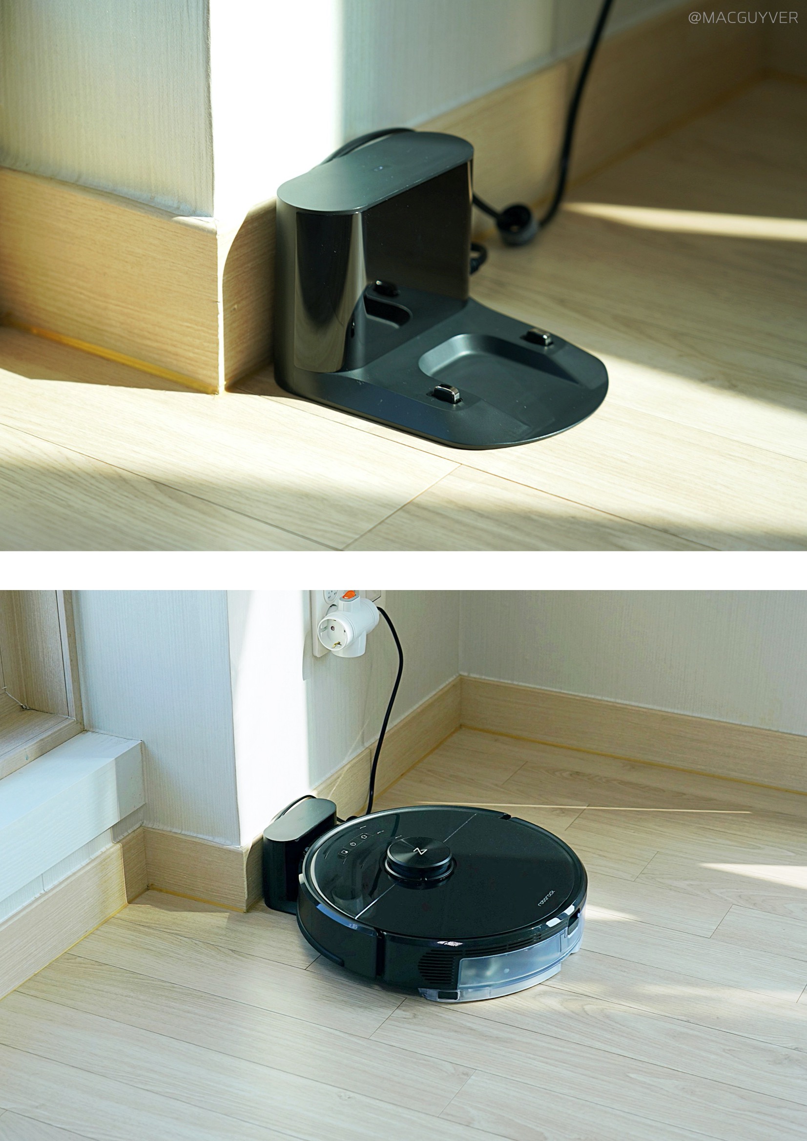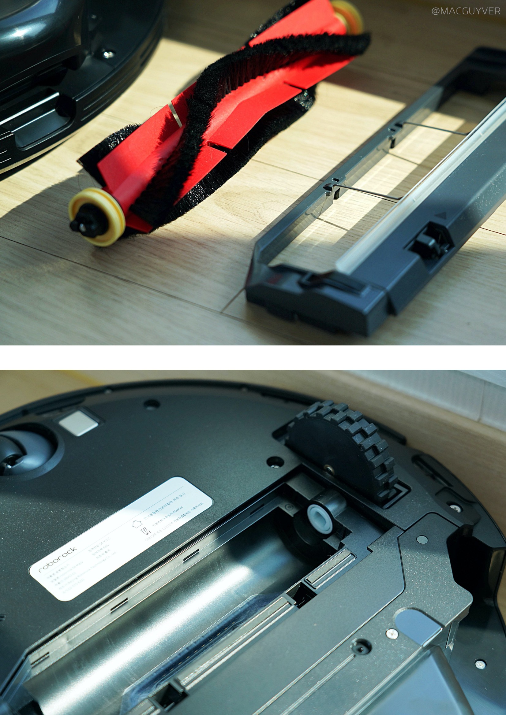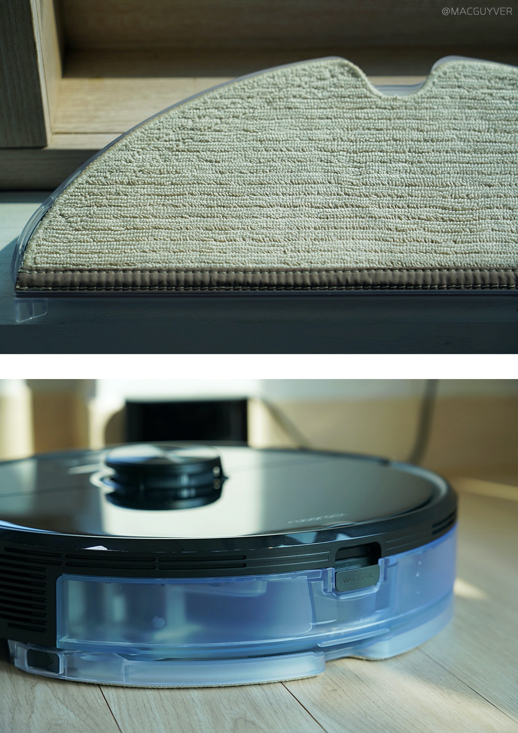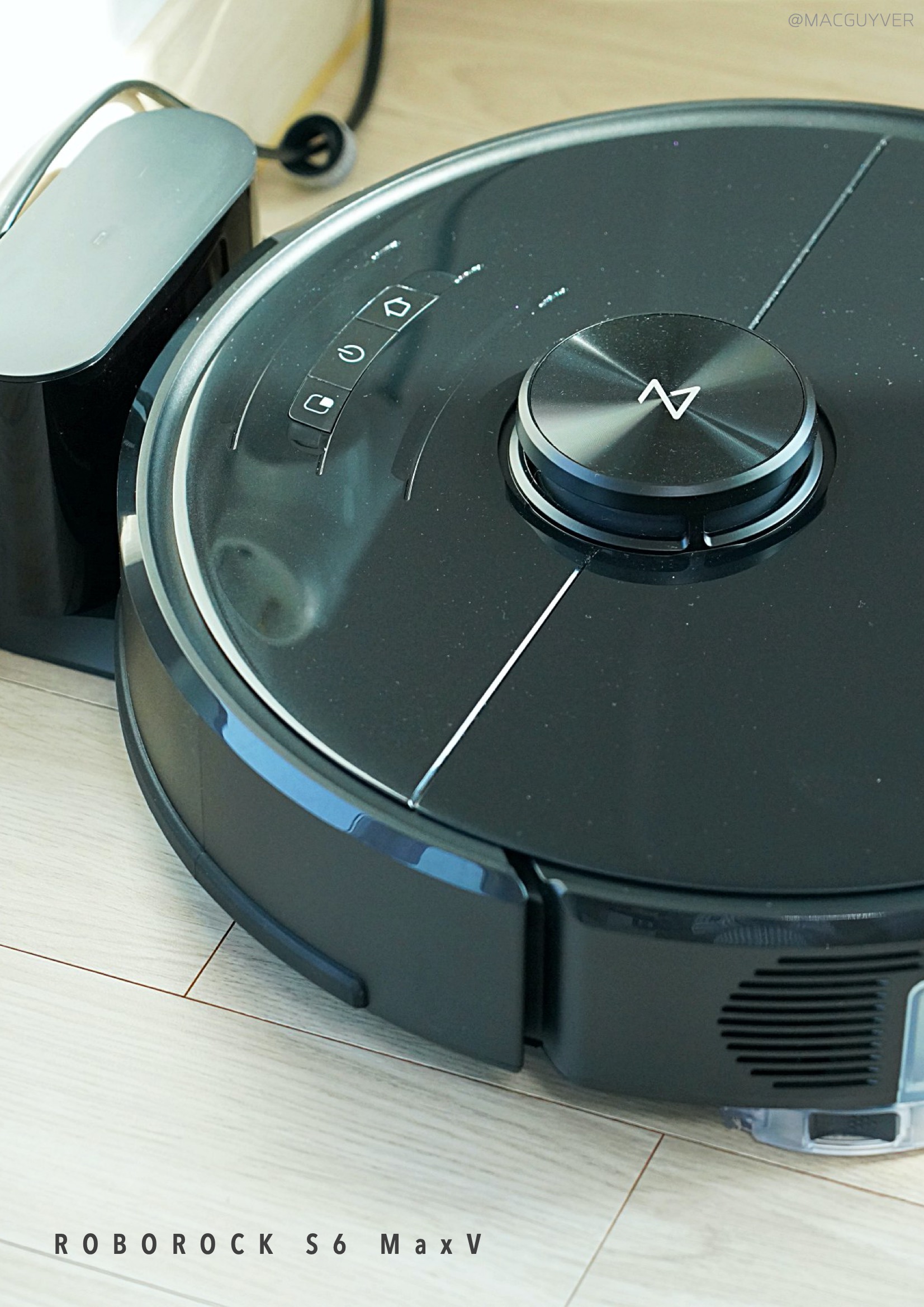 #. 로봇청소기 디자인 이번에 사용해 본 로보락 S6 MaxV는 블랙에 유광 재질이었는데요. 일체감 있는 심플한 디자인이라 튀지 않고 차분한 느낌이 들어서 화이트만큼이나 마음에 들었어요. S5 Max는 매트한 화이트톤에 주황색 센서가 포인트가 되었다면 로보락 S6 MaxV는 세련되고 통일감 있는 컬러가 매력이 아닐까 합니다. 거기다 로보락로봇청소기의 0.5cm 정도의 여유가 있는 충격방지 범퍼와 부드럽게 탈착되는 2개의 물통도 사용 시 만족도를 높여줬어요.