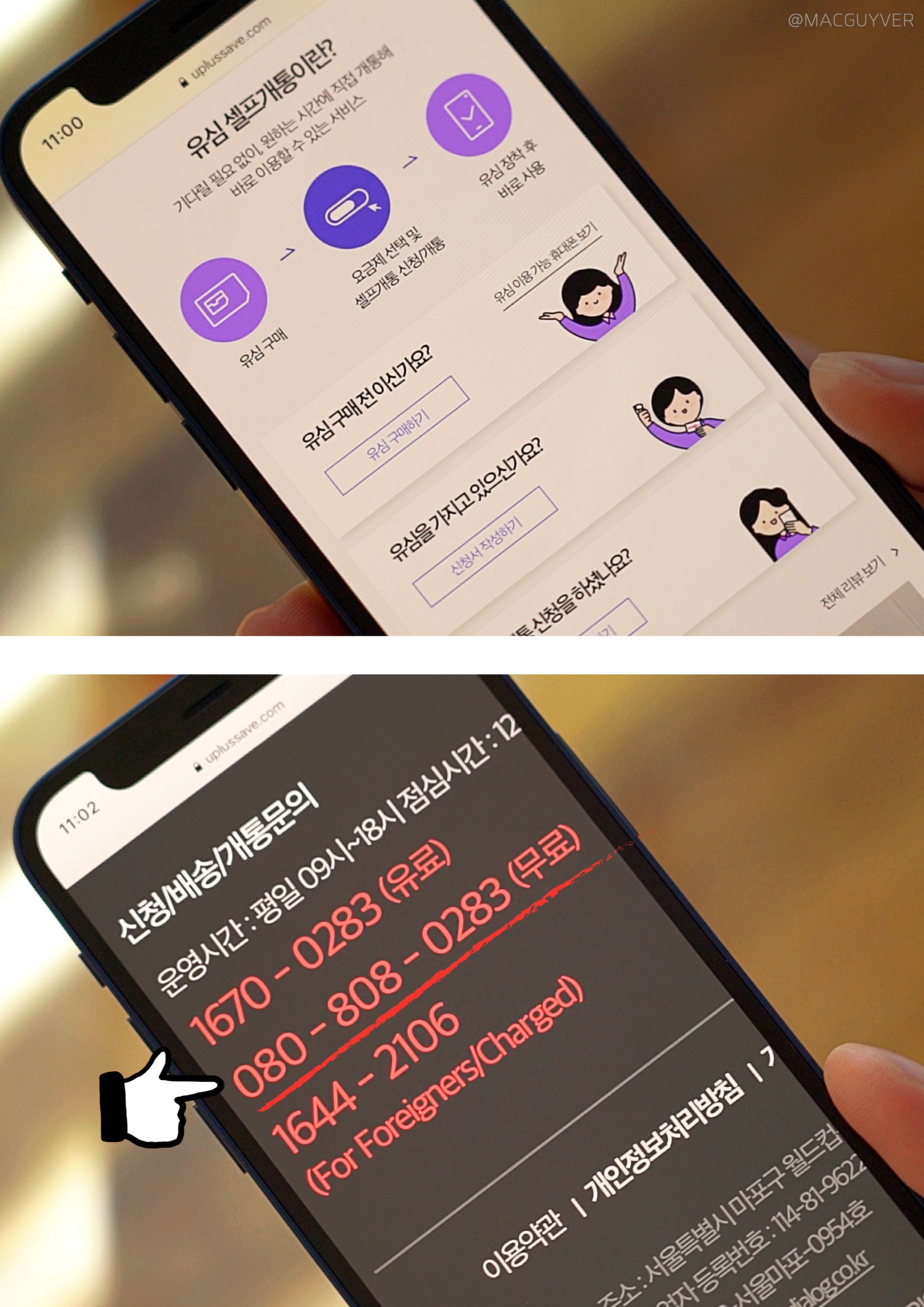 알뜰폰 요금제 세 번째, 저는 사실 유플러스 알뜰모바일을 수년간 사용 중인 찐 사용자인데요. 여러분들도 가입하시려면 GS25 편의점에서 바로 구매하거나, 택배 수령으로 하루 이틀이면 바로 받아볼 수 있어요. 요즘에는 특히 비대면이 중요하잖아요? 정말 빠른 비대면 서비스를 추천드리는데요. 유심을 받아서 셀프 개통을 바로 하고 손쉽게 개통해서 사용할 수 있으니까 정말 편리하더라고요. 급한 마음에 유심을 받아서 바로 아이폰12에 꽂으면 안 되니까, 개통 완료가 되었는지 확인한 다음에 꽂아서 유플러스 알뜰모바일을 사용해보실 것을 추천드립니다. 유모비 참고로, 공식 사이트에서는 유심을 분리하는 방법부터 배송 서비스와 신청서 작성 방법, 요금제 비교까지 꼼꼼하고 디테일하게 알려주니까 궁금한 점도 바로 해결이 되더라고요. 물론, 그래도 궁금해서 문의가 필요하다면 전화를 해야 하잖아요? 이때, 유플러스 알뜰모바일 고객센터 번호가 유료/무료로 나뉘니까 꼭 080-808-0283 번호로 연락하면 무제한 무료로 통화하실 수 있다는 점도 알려드릴게요. 이쯤에서 알뜰폰 추천 마지막 힌트를 드리자면 '비대면 배송'과 '편의점 유심 구매'라는 문구와 함께 댓글을 남겨주시면 됩니다.