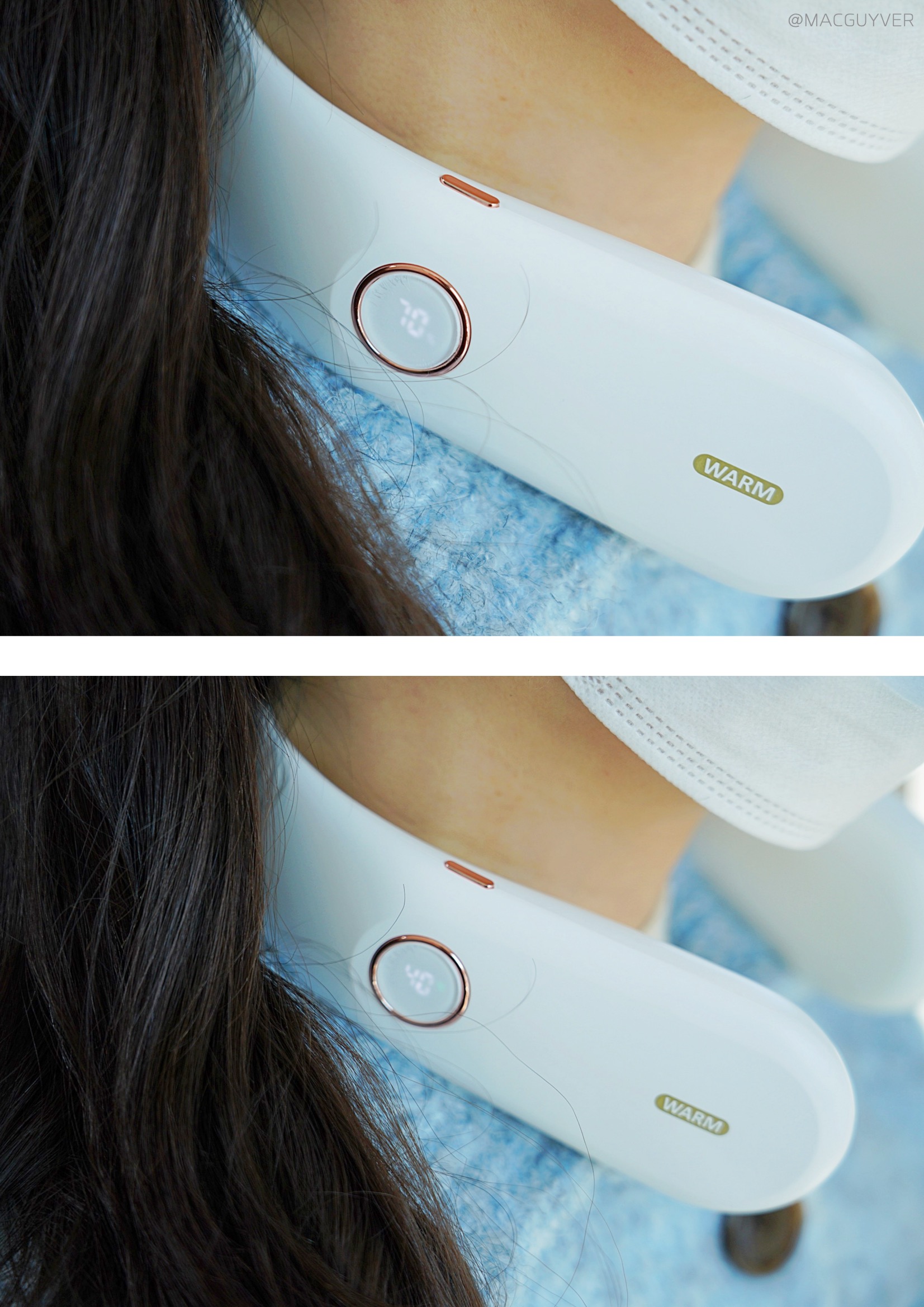 실내외에서 다양하게 사용해본 소감도 알려드려야겠죠. 먼저 사무실에서 종일 착용해봤는데 사용 전과 사용 후의 느낌이 확실히 달랐어요. 사실 실내에서는 큰 필요가 없을 것 같기도 하고, 살짝 거추장스럽게 느껴질 것도 같았는데 오히려 목 주위가 훈훈하니까 더 쾌적한 느낌이 들더라고요. 특히 목뒤로 넥워머에서 느껴지는 따뜻한 온기 덕분에 피로감이 줄고 더 가뿐한 기분이었거든요. 냉기가 들어오거나 목이 차갑다고 하루 종일 뜨거운 물을 마시는 것도 힘들었는데, 넥워머를 써보면 따뜻함이 계속되니까 의무적으로 물을 마시지 않아도 되었는데요. 또 서늘하긴 한데 목도리나 목티는 답답함 때문에 손이 가지 않을 때, 정말 딱 맞는 넥밴드 워머였어요. 옷을 가볍게 입어서 활동성을 더하면서도 목을 따뜻하게 해주니까 유용한 거죠. 참고로 온데이 넥밴드 워머는 40, 45, 50, 55도의 4단계 온도가 가능하지만 실내에서는 45도에서도 살짝 뜨겁게 느껴질 정도니까 단계별 온도는 이 정도로 충분하지 않을까 합니다.