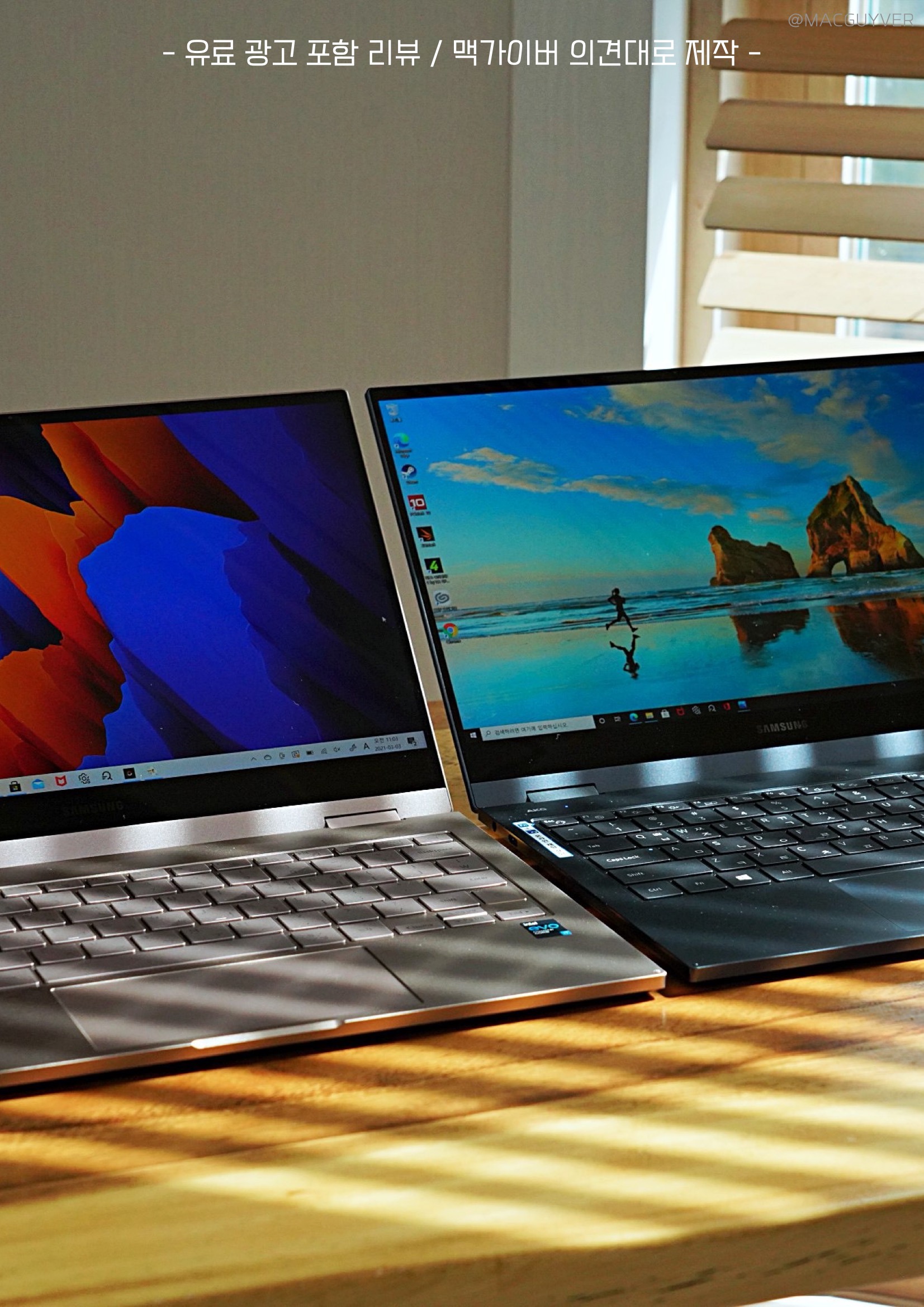 우선 230만원짜리 삼성노트북, 갤럭시북 플렉스2 NT930QDA-K71AZ의 스펙부터 보실까요? NT930QDA-K71AZ / NT930QDA-K71AB 프로세서 : Intel i7-1160G7운영체제 : 윈도우10 Home메모리 : 16GB LPDDR4X저장장치 : 512GB 4세대 NVMe디스플레이 : 13.3" FHD, QLED사운드 : AKG 5W x2, SoundAlive네트워크 : 블루투스 5.1, WiFi6(Gig+)포트 : 썬더볼트4 x2 / USB-C / UFS / 3.5mm배터리 : 69.7Wh / 65W 어댑터규격 : 302.6 x 202.9 x 12.9 mm / 1.16kg다른 건 다 좋은데, CPU가 조금 아쉽죠. 저는 플렉스2가 2in1인걸 감안해도, 50만원 정도는 삼성노트북 프리미엄인가 하는 생각이 들었는데요. 갤럭시북 플렉스2는 특히나 스펙이 다가 아니긴 해요. 디스플레이, 소프트웨어, 터치 완성도 등을 따져볼 필요가 있습니다. 전반적으로 봤을 때는 과연 가격표가 합리적인지 제대로 확인해볼게요.