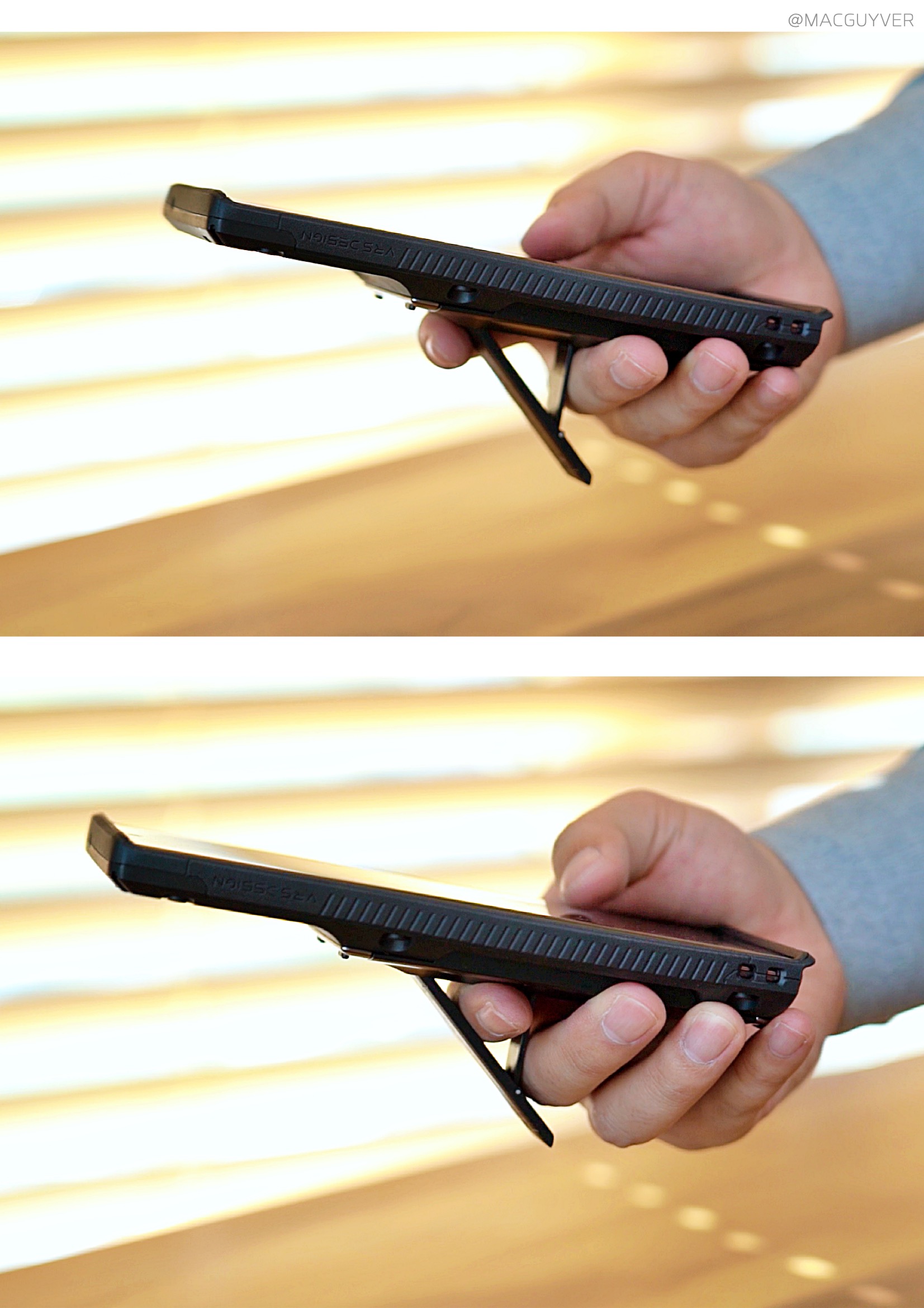 #. 아이폰 12 거치대 케이스 Stand 케이스마다 편차가 있는지 제법 뻑뻑하기도 하고 한 번에 열리지 않으니까 이렇게 당겨서 고정해 줘야 하는데요. 또 닫을 때도 꾹 눌러서 확실히 닫아야 하더라고요. 대신 안정적으로 고정되어서 실수로 닫히거나 넘어지지 않았는데요. 참고로 아이폰12 케이스에 스마트 링 대신 이렇게 사용해볼 수도 있으니까 폰을 안정적으로 잡고 쓸 수 있었어요. 각도는 하나라서 S21 울트라처럼 세로로 긴 폰에서는 화면 터치할 때 불안해서 스탠드가 조금 더 길었으면 싶더라고요. 하지만 가로모드는 상당히 안정적이어서 혼밥하면서 유튜브 영상을 보거나 인강을 볼 때도 편리하게 사용할 수 있었습니다.