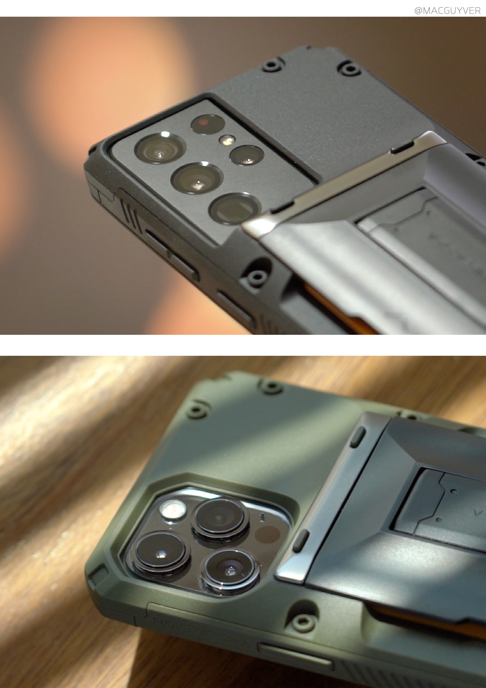 아이폰12프로 케이스 버튼은 생폰보다는 힘을 살짝 더 줘야 하지만 제법 편하기도 하고, 단자 부분도 충분히 뚫어둬서 호환성이 괜찮았는데요. 모델에 따라 볼륨이나 단자 부분이 들썩이니까 먼지가 들어갈 수도 있는 데다, 특히 S21 울트라는 측면이 유달리 튀어나와 보여서 적응이 필요해 보입니다. 그리고 카드수납 케이스 카드 커버를 열어보면 모서리가 제법 날카롭기도 하고, 여러 구조들로 되어 있어서 비나 습기는 피하는 게 좋을 것 같은데요. 바닥에 놓아두고 터치하기에 불편한 점이나 일부 셀카봉 거치대와 호환성이 낮은 아쉬움도 있었어요.대신 장착이나 탈착이 쉬우면서도 유분이 잘 안 묻고, 카메라 보호는 특히 제대로 해주니까 안심이 되더라고요. 그래서 외출할 때 카드 케이스를 씌우고, 집에서는 가볍게 탈착해서 생폰으로 사용할 수도 있어서 맥세이프도 사용이 가능했습니다. 저는 강화유리 없이 생폰으로 사용하는데 화면 보호까지 되는 데다, 강화유리를 부착해도 호환성이 좋아서 활용도가 높아 보였어요. 참고로 아이폰12 미니처럼 작은 폰은 특이한 카드 케이스 디자인이 더해져 있는데요. 스피커 홀을 제법 그럴듯하게 더해줘서 소리를 모아주기도 했습니다. 물론, 미니의 작고 슬림한 디자인은 포기해야 하는데요. 후면 카드 커버가 미끄럽긴 하지만 적당한 볼륨감을 더해줘서 그립감이 좋아지고 딱 적당한 두께감을 주더라고요.