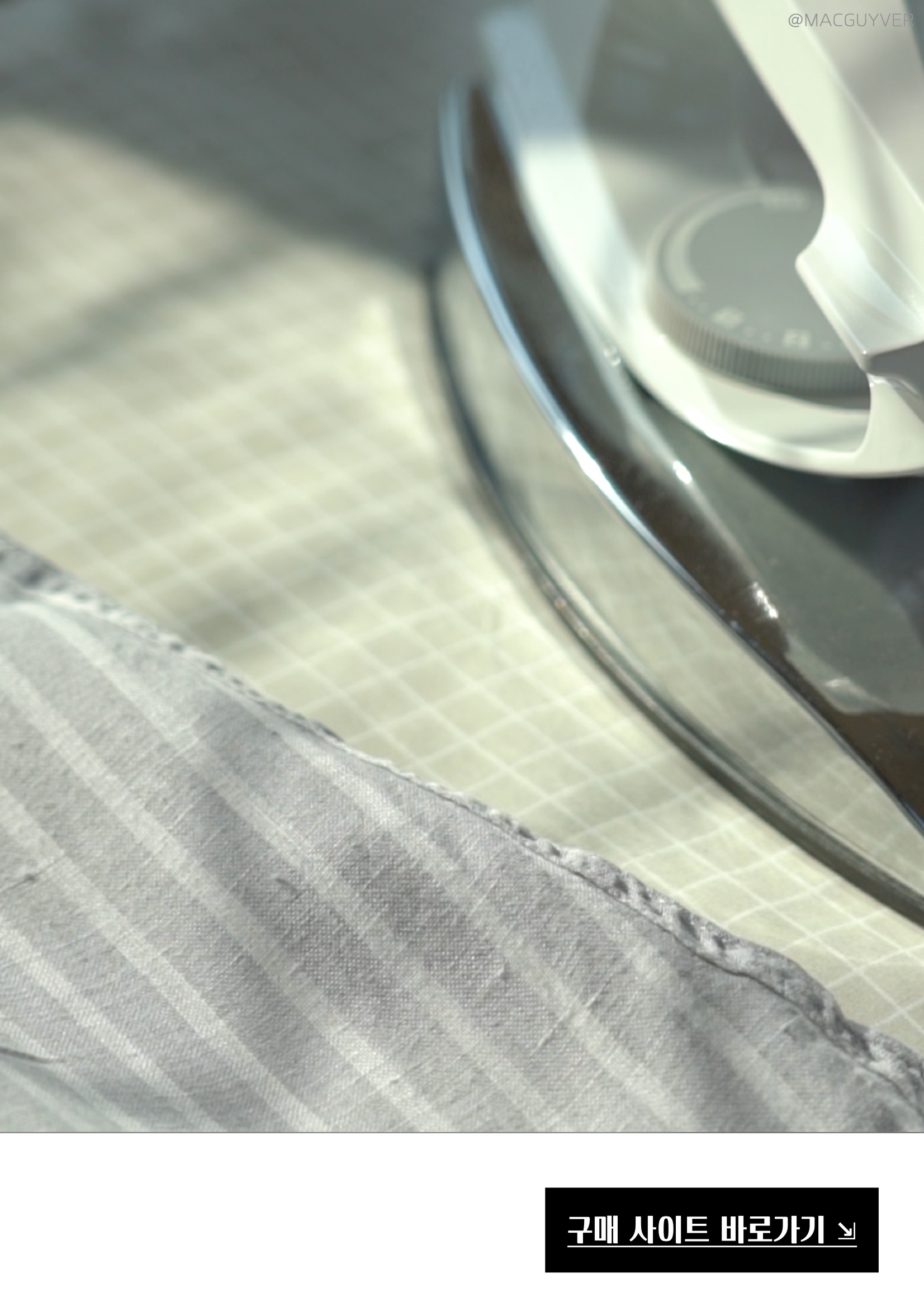 보만 다리미판의 첫번째 장점은 다림질이 정말 잘 된다는 거예요. 저도 보만 다림질판을 사용하기 전엔 평범한 다리미판 정도로만 생각했는데, 사용할수록 스팀 다리미에 꼭 필요한 제품이더라구요. 보만 다리미 매트를 사용하면 지그시 눌러주는 힘까지 더해져서 깊은 주름도 쉽게 펴지는거죠. 그동안 아무리 스팀을 오래 분사해도 주름이 펴지지 않았던 적이 많았는데 그 이유가 여기 있더라고요. 깔끔하게 다림질하기 위해서는 스팀뿐만 아니라 이렇게 옷감을 고정하고 팽팽하게 잡아주는 힘이 필요하니까요. 덕분에 두툼한 린넨 소재의 옷도 힘 있게 다려지네요. 특히 소매 끝단이나 아랫부분은 손으로 아슬아슬하게 당겨가며 다렸는데, 다리미 매트가 있으니까 끝부분까지 말끔하게 다릴 수 있어서 더 안전하기도 했어요.