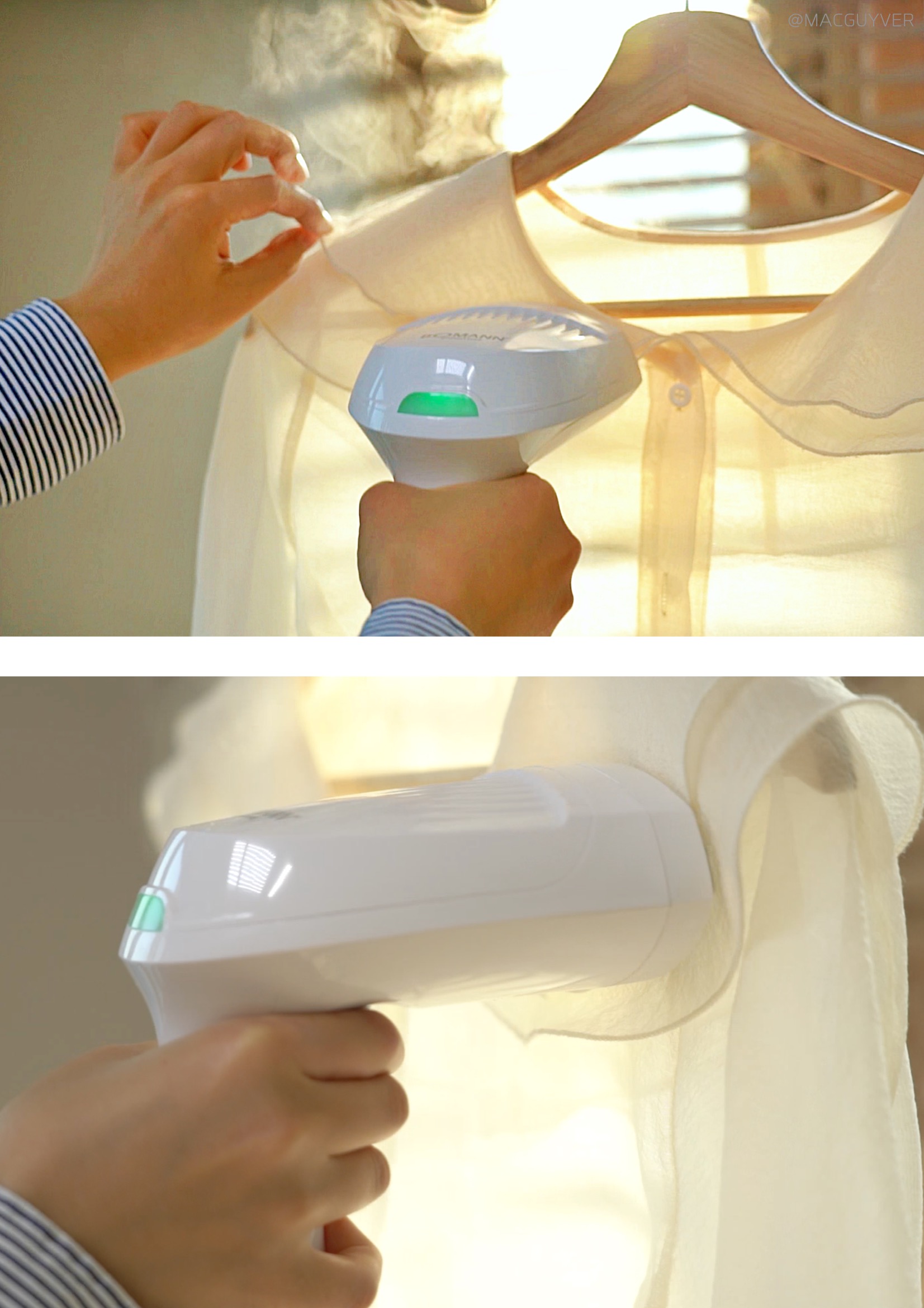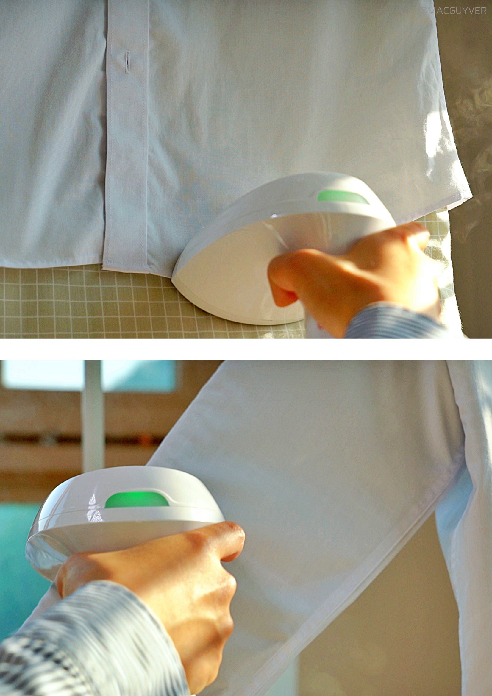 물론 핸디형 스팀다리미 판의 편의성도 좋아야겠죠? 보만 다리미 매트는 심플한 디자인이지만 편리하고 실용적이었는데요. 옷의 소재나 디자인에 따라 건식 다림질이 필요한 경우도 있잖아요? 보만 다리미 매트는 습식, 건식 어떤 식으로든 사용이 가능해서 일석이조의 효과가 있더라고요. 이렇게 길이가 긴 원피스는 세워서, 와이셔츠 다림질, 치마나 손수건 같은 옷감은 눕혀서 다릴 수 있는 거죠. 90cm 길이라 긴 옷에 사용하기에도 좋고, 제법 두툼한 두께감이라 어디에 놓고 사용해도 안심이 되더라고요. 또 옷걸이에 걸린 상태에서는 앞뒤로 회전도 가능해서 번거롭게 움직일 필요가 없었는데요. 옷걸이가 없어도 어디든 걸어서 바로바로 다릴 수 있다는 점도 큰 장점 있어요. 부직포 방식으로 탈부착이 간편한 소매 패드는 소매 폭에 따라 부착할 수도 있고, 분리할 수도 있는데요. 제법 탄탄해서 흐트러지거나 휘지 않아서 좋았습니다.