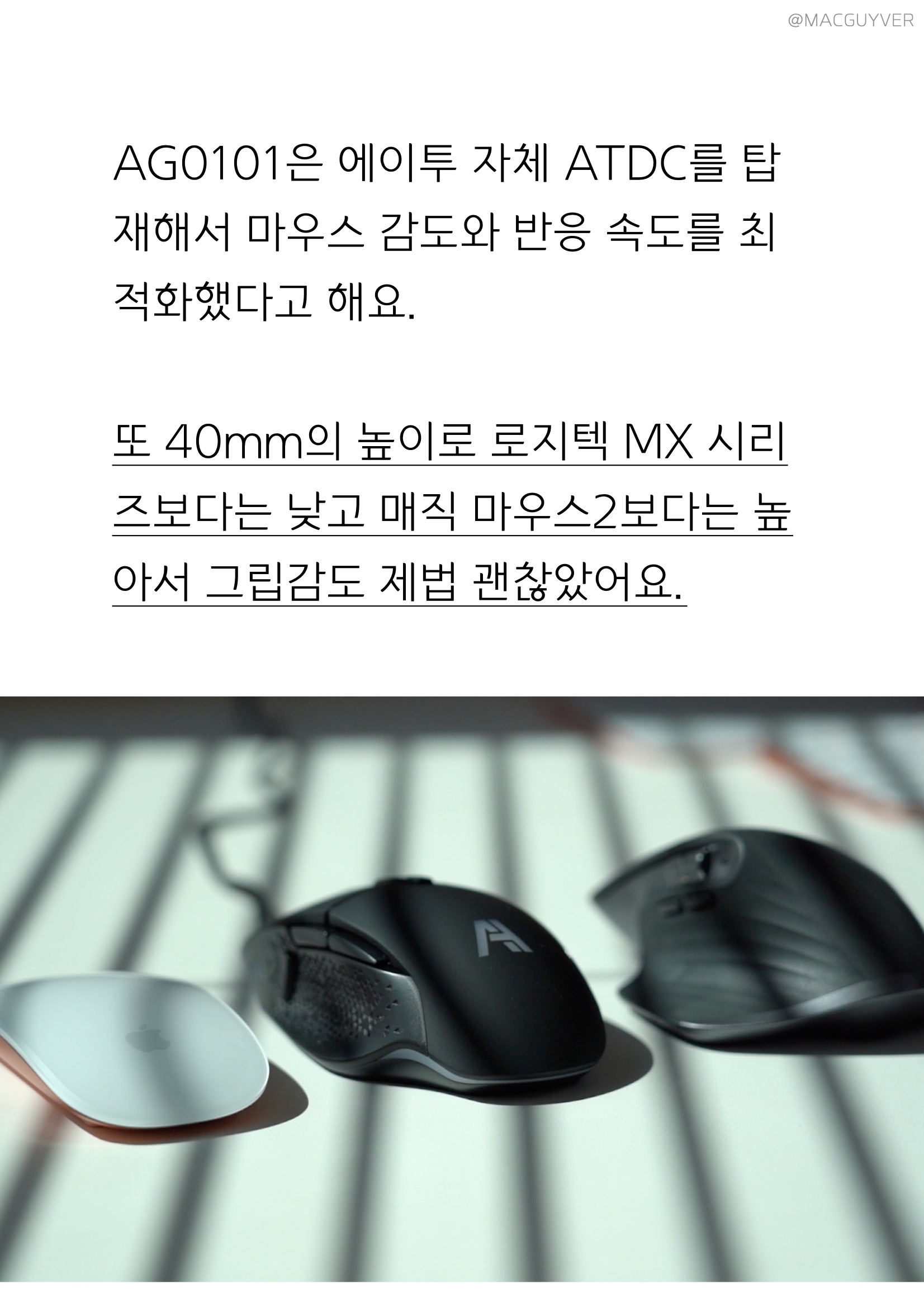 유선마우스 AG0101은 에이투 자체 ATDC를 탑재해서 마우스 감도와 반응 속도를 최적화했다고 해요. 또 40mm의 높이로 로지텍 MX 시리즈보다는 낮고 매직 마우스2보다는 높아서 그립감도 제법 괜찮았어요. 300만회 클릭 테스트도 통과했다고 하니까 2만원대 가격으로 부담 없는 게이밍 마우스를 찾는 분들에게 괜찮지 않을까 싶은 거죠. 특히 에이투는 가성비 제품을 고집하는 국내 브랜드라 본사에서 직접 제조부터 유통, 판매, AS까지 총괄하는 브랜드이기도 한데요. 저는 에이투 AG0101 게이밍 마우스, 키보드마우스를 만족스럽게 사용해봤는데요. 앞서 소개 드린 것처럼 6분에게 증정해드리는 이벤트도 진행되니까 체험해보고 싶으신 분들은 댓글 이벤트에 참여해보시기 바랍니다.