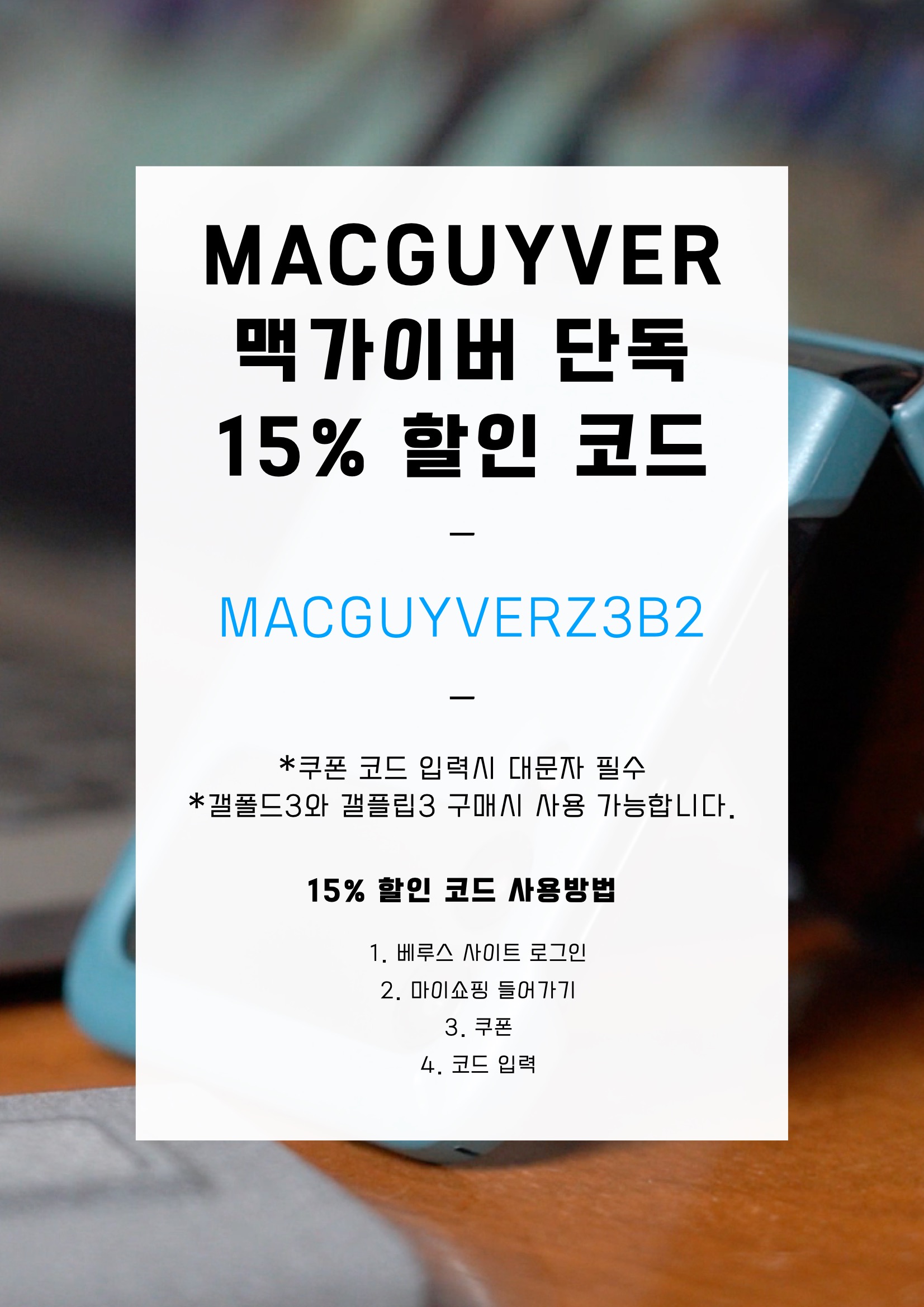 저는 갤럭시Z폴드3 케이스, 갤럭시Z플립3 케이스 베루스 시리즈를 이렇게 평가해봤는데요. 매니아층이 확실할 것 같은 독특하고 개성 있는 디자인부터, 심플하면서 기능성을 더한 폴드3 케이스, 플립3 케이스까지 다양해서 갤폴드3와 갤플립3를 구매하신 분들이 고려해볼 만한 케이스가 아닐까 합니다. 앞서 소개 드린 것처럼 각각 5분께 갤폴드3 &갤플립3 베루스 케이스와 노트북 백팩을 증정해드릴 예정이니 관심이 있으시다면 참여해보세요. 또 구매예정이라면 맥가이버 단독 15% 추가 할인 쿠폰을 사용하실 수도 있습니다.
