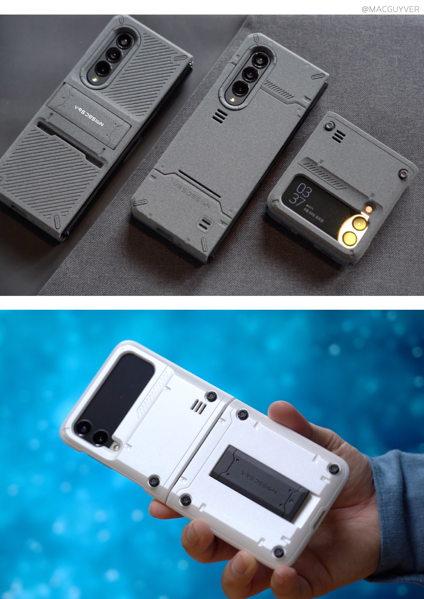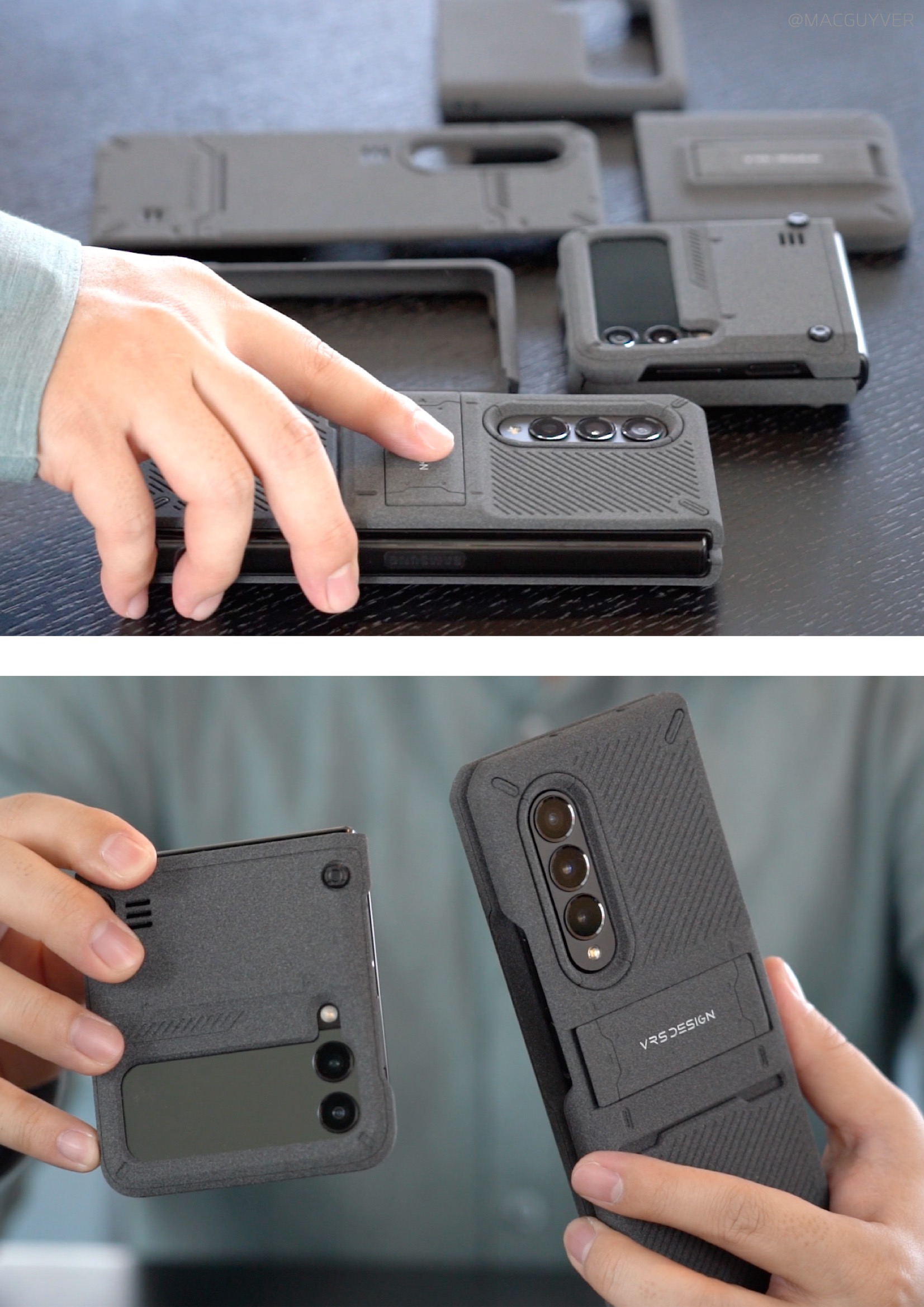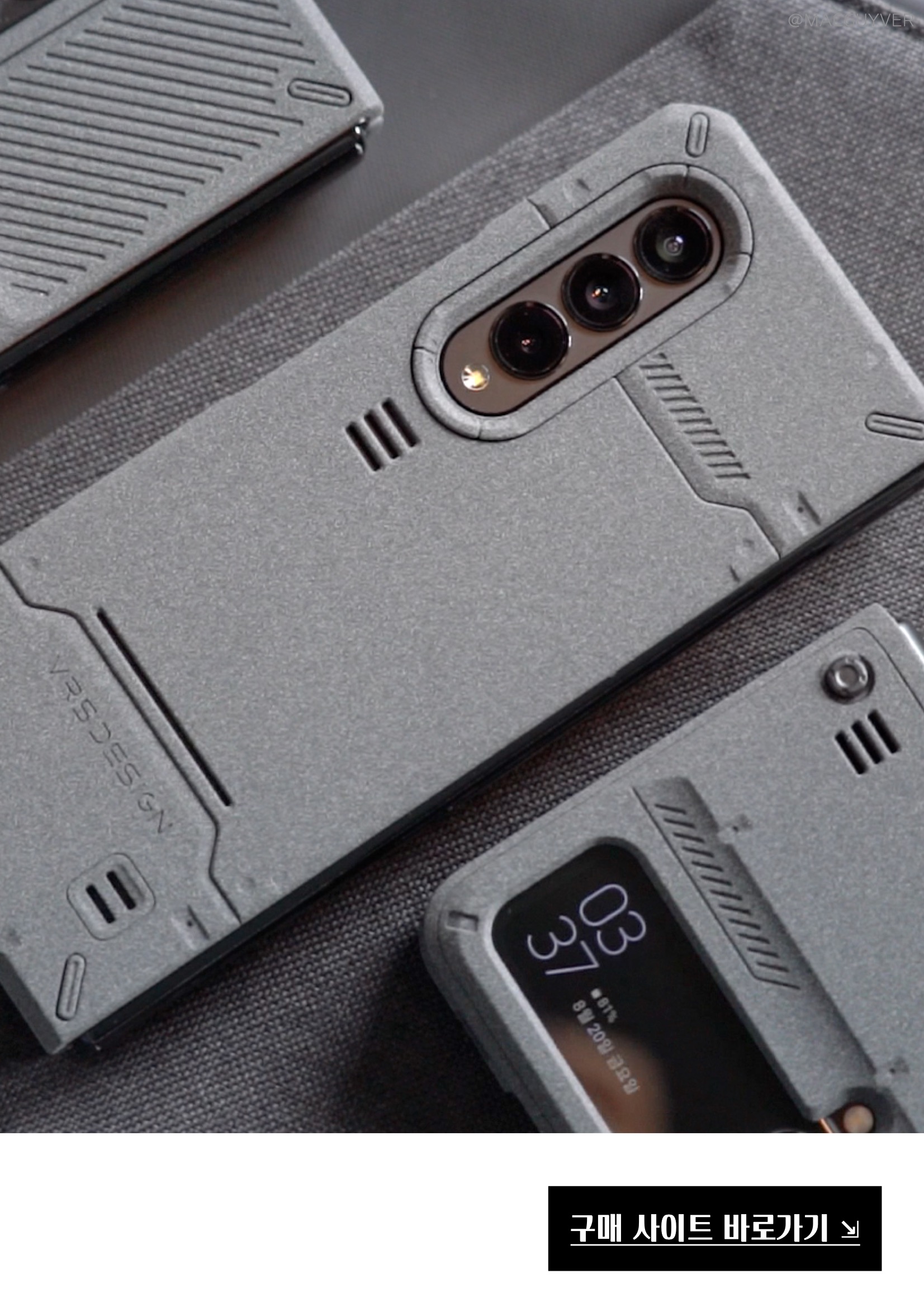 갤럭시폴드3 케이스, 갤럭시Z플립3 케이스 베루스 시리즈는 공통적으로 무선 충전에 삼성 페이 호환, 1.2미터 높이의 드랍 테스트까지 받은 내구성을 가졌어요. 또 단단한 PC에 부드러운 TPU 이중구조라 더 안심이 되기도 하는데요. 폴더블폰의 내구성이 좋아졌지만 여전히 흠집과 찍힘, 충격에 약한 아쉬움을 덜어줄 것 같더라고요. S펜 수납 기능이나 물에서의 사용성을 보장하지는 않지만 대부분의 환경에서 더 안심하고 쓸 수 있을 것 같은데요. 거기다 갤버즈 전용 케이스까지 일체감이 있어서 세트로 사용하기에도 괜찮았어요. 확실히 베루스만의 컨셉을 제대로 담아내면서도 점점 더 업그레이드가 되는 게 인상적이더라고요.