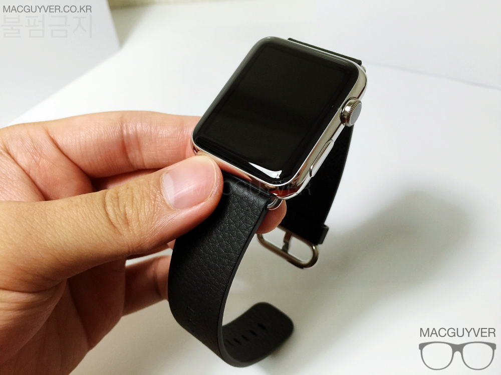 제법 일체감이 있다고 할까요? 애플워치 스포츠의 경우 이 부분도 모두 플라스틱으로 되어 있지만 애플워치는 이 부분도 스테인리스로 되어 있었기 때문입니다.
