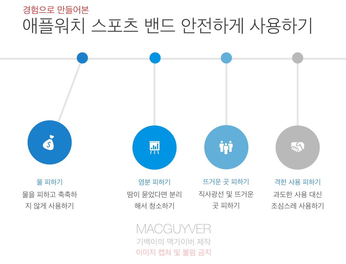 필자는 이것으로 운동을 한 적도 없고, 과도하게 사용한 적도 없음에도 갑자기 까지는 애플워치의 스포츠 밴드를 보면서 이 제품으로 운동을 해도 되는가 하는 의문이 들기도 했습니다.