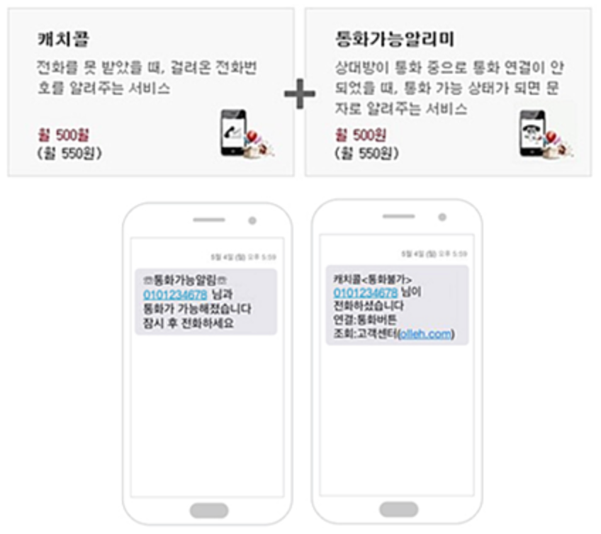 또한 캐치콜을 활용하면 통화 중 걸려온 통화를 문자로 알려주기 때문에 놓치지 않고 바로 전화를 걸 수 있다는 편의성이 있습니다.