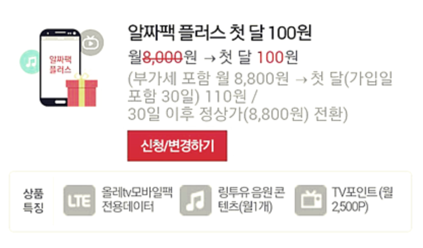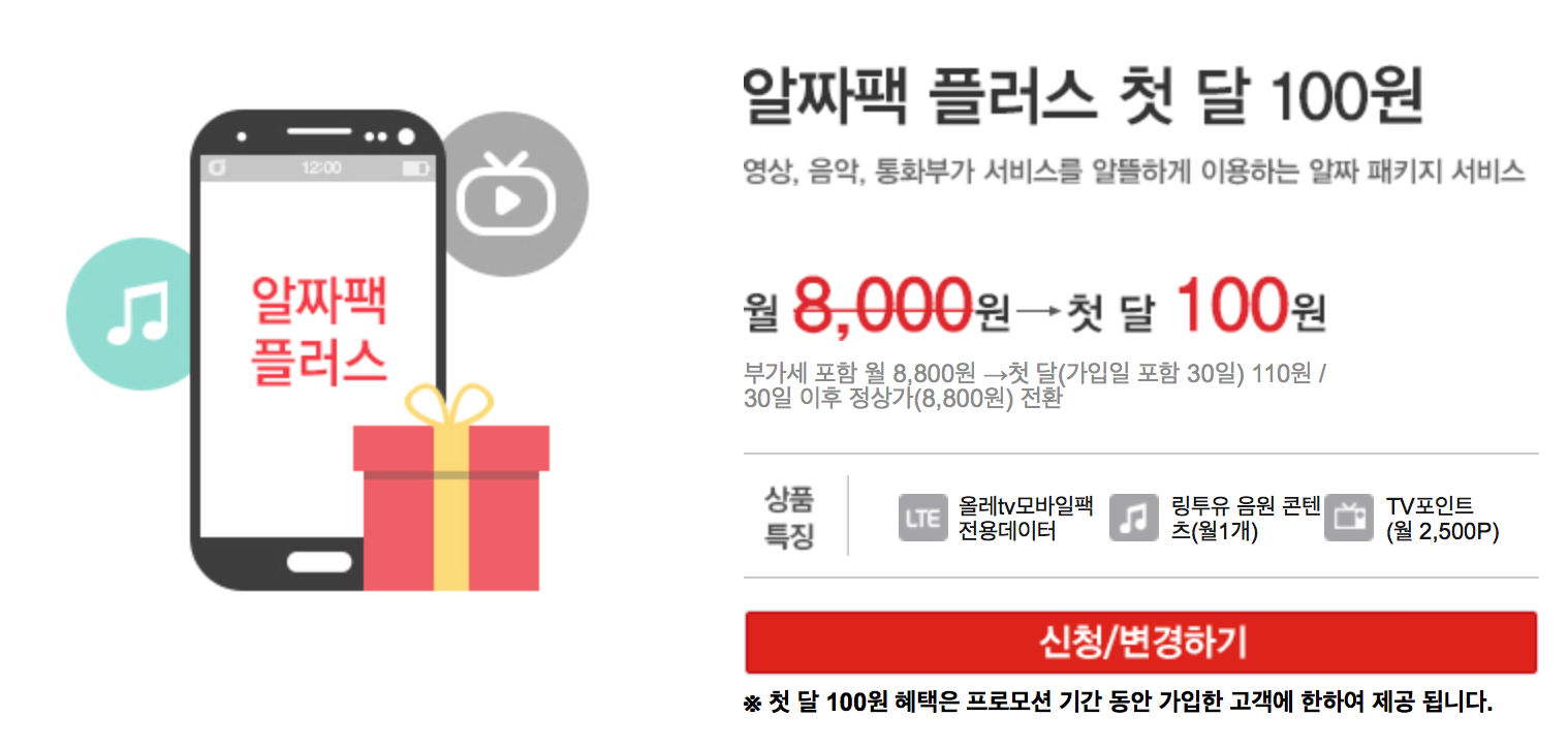 KT 고객이 '올레'라고 외칠만한 이벤트가 있어서 소개해드립니다. 다름아닌 알짜팩 플러스 상품인데요. 해당 상품은 기존의 혜택에 더해서 추가 헤택을 제공하고 있습니다.