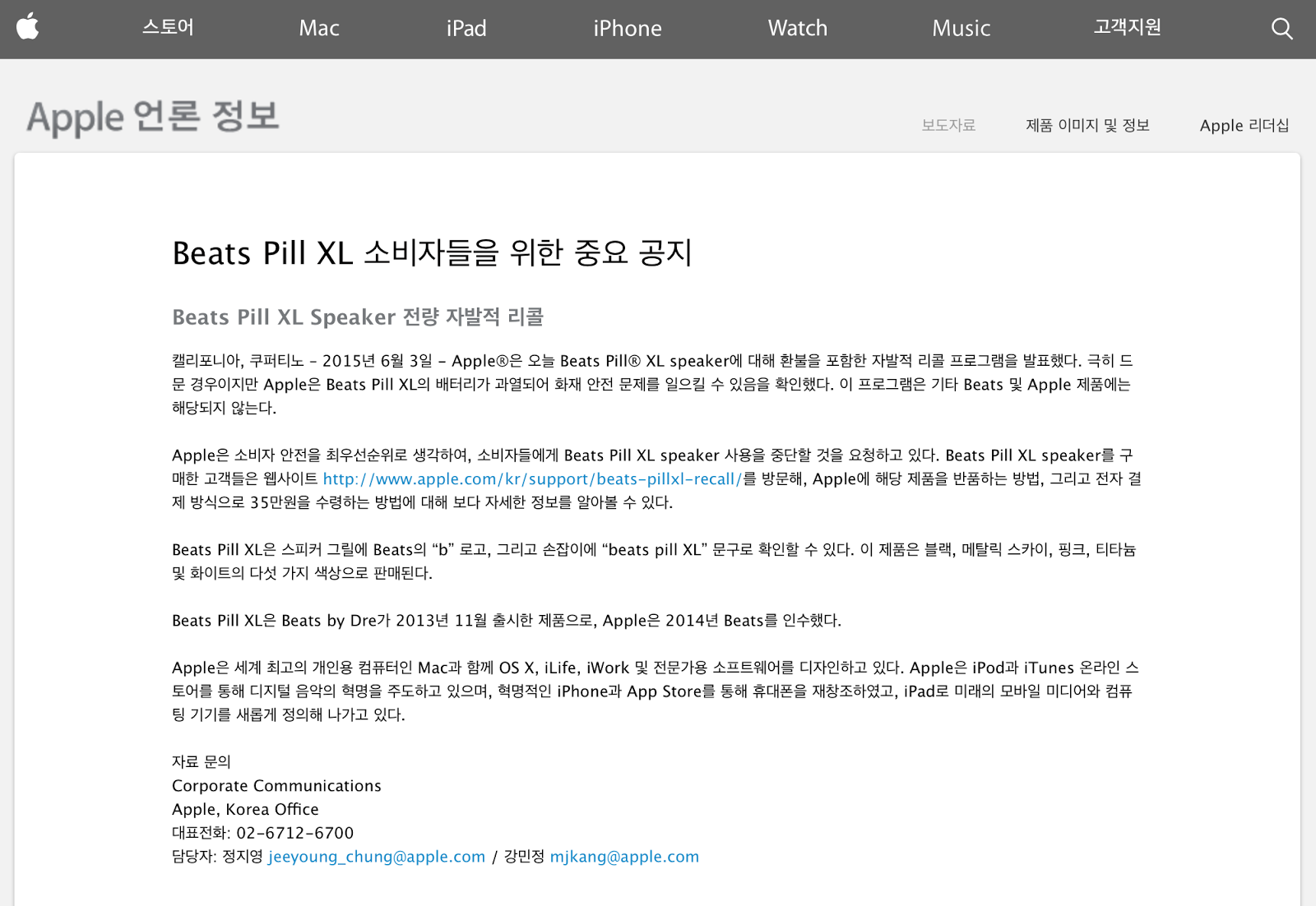애플코리아측에서는 분명한 보도 페이지를 활용해서 해당 정보와 소식을 전하고 있기는 했지만, 해당 링크를 타고 들어가지 않는다면 소식을 알기도 힘들었는데요.