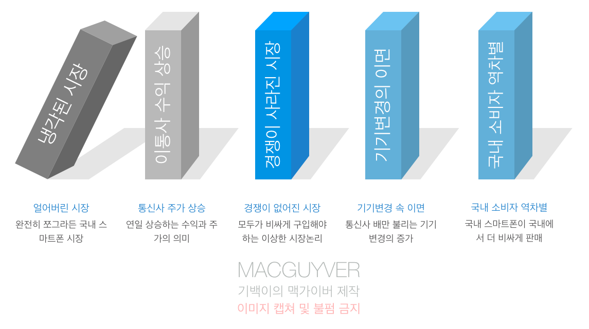SK가 수익을 더 올리거나 KT가 더 얻고, 혹은 LG가 더 버는 차이를 제외하자면 사실상 소비자들이 새 스마트폰을 구매하는 것과는 전혀 상관이 없는 것입니다.