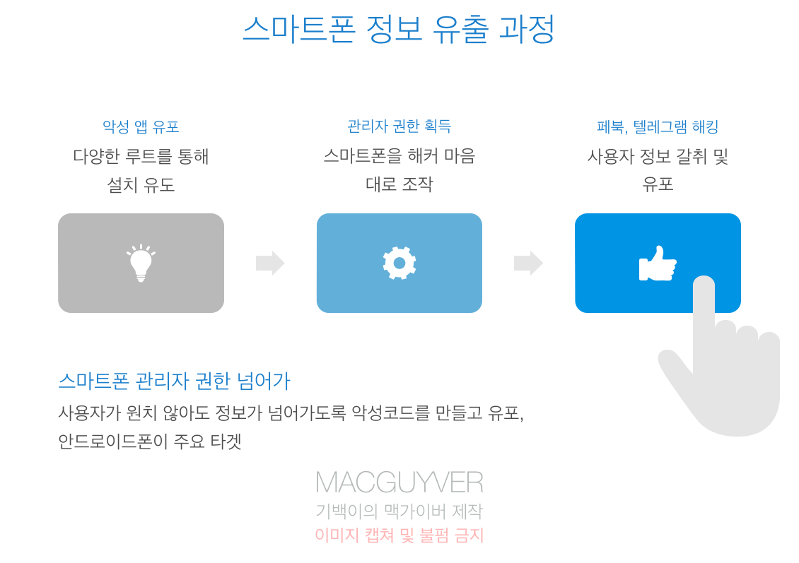 사실상 스마트폰으로 할 수 있는 모든 것을 해커가 탈취함으로 인해서 발생하는 이러한 보안 이슈는 특히나 안드로이드폰 사용자들에게 큰 피해를 끼치고 있습니다.