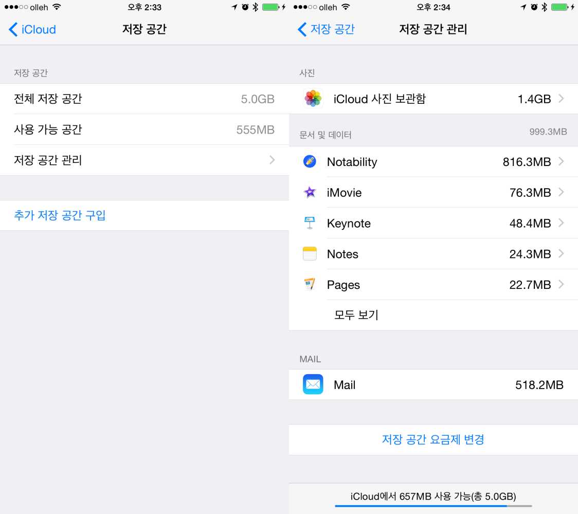 무엇보다도 기기가 아무리 늘어나더라도 동일한 아이클라우드 용량이 가장 큰 문제입니다. 기기가 3개이든 5개이든 모두 용량이 5기가로 동일한 것이죠.