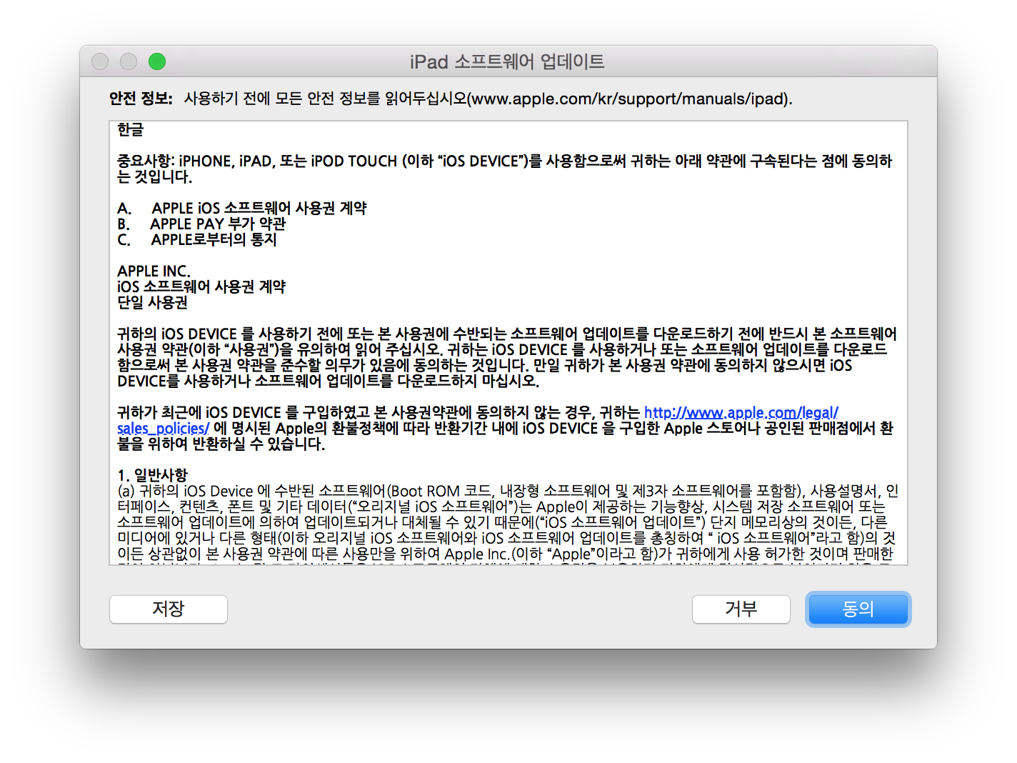 [복원]이 아니라 [업데이트]를 눌러야 iOS 기기 속 자료들이 사라지지 않고 그대로 iOS9을 설치할 수 있습니다.