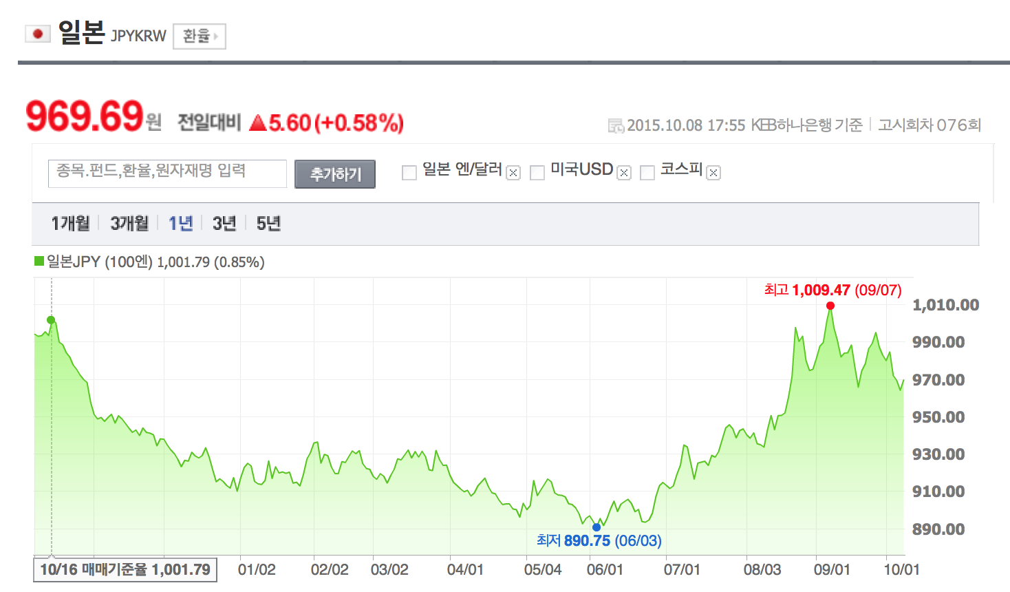 그렇다면 이는 애플의 국내 차별 탓일까요? 아니면 천정부지로 치솟은 환율 탓일까요? 실제 환율은 아이폰6가 발매되던 지난해와 비교해서 최대 150원이나 인상되었습니다. 말 그대로 하늘 높은 줄 모르고 인상된 셈인데요.