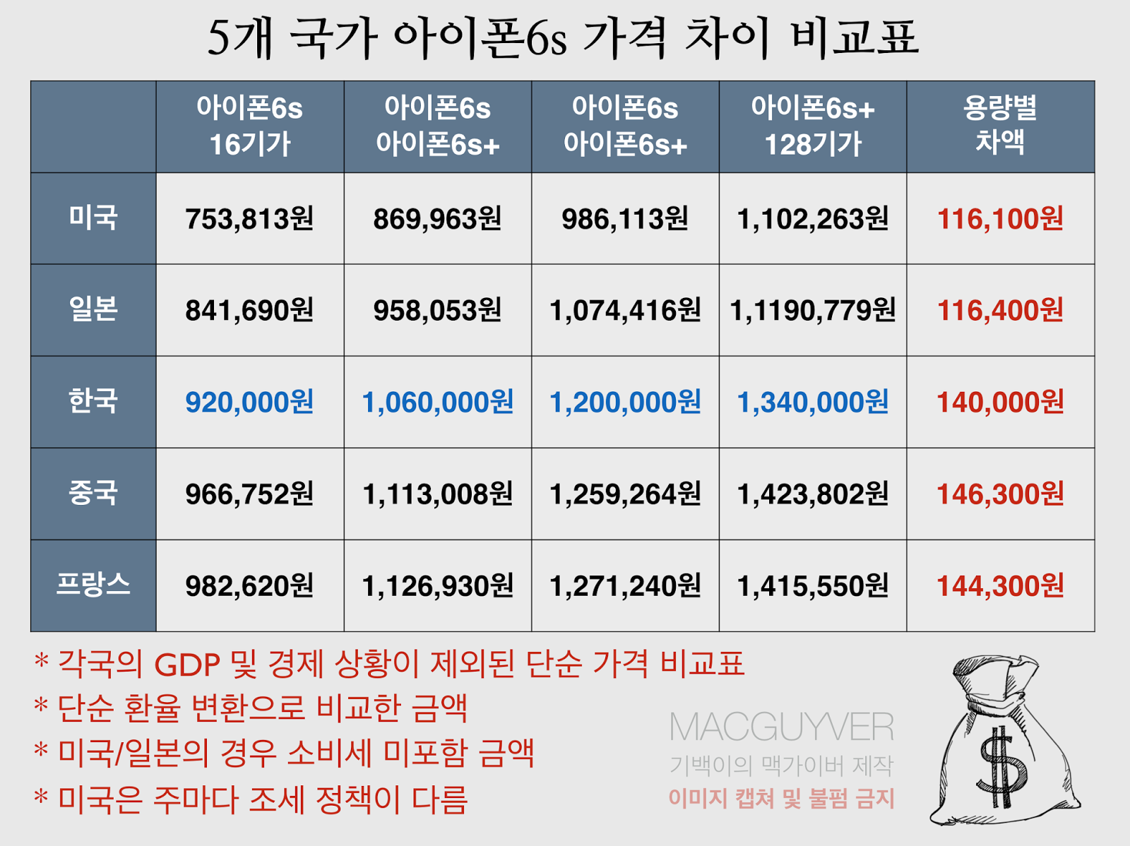 아이폰6s의 비싼 가격과 용량별 14만원이라는 차등 정책은 분명 비난받아야 할 일일지 모릅니다. 결국은 장삿속이기 때문이죠. 하지만 국내만 역차별을 한다거나 한국 소비자를 호갱으로 본다는 비난은 다소 방향성이 빗나간 것 같습니다.