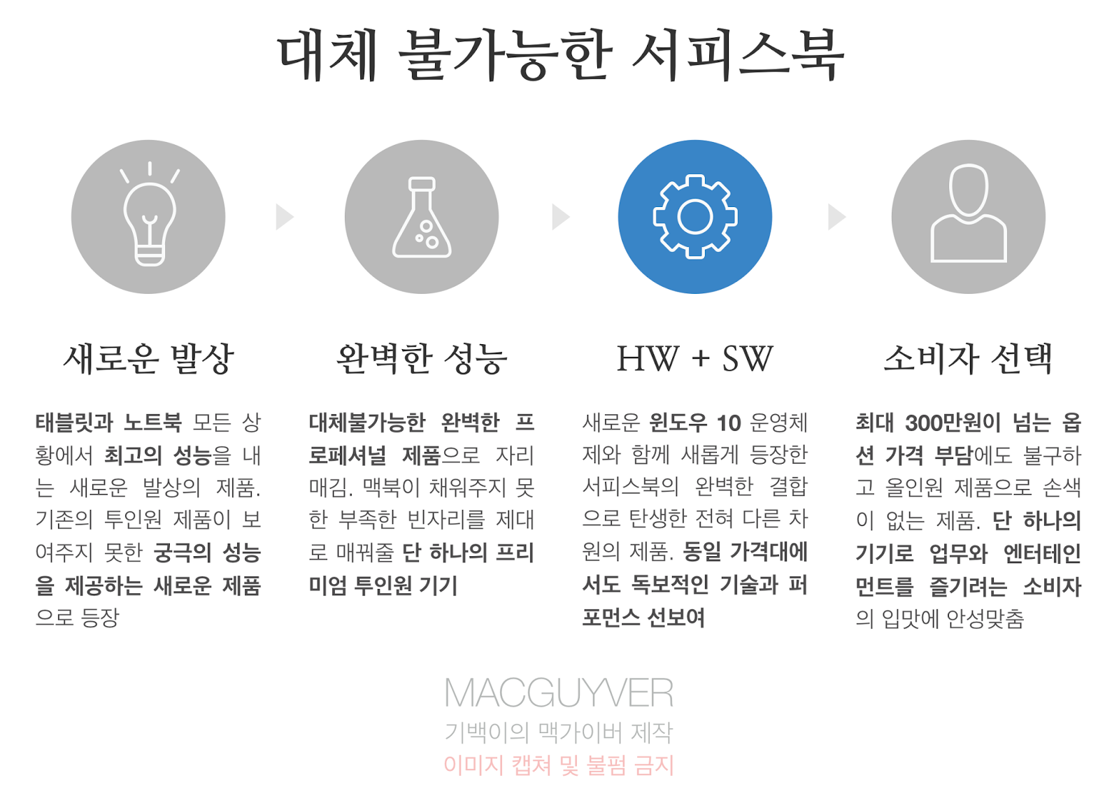프리미엄 시장에서 맥북 프로를 제대로 견제하면서 동시에 아이패드 프로까지 꼴뚜기로 만들 매우 높은 완성도의 서피스북은 바로 이러한 의미로서 단순 판매량을 넘어서는 강한 한 방을 날린 것 같습니다.