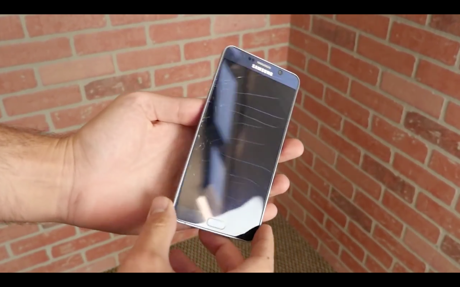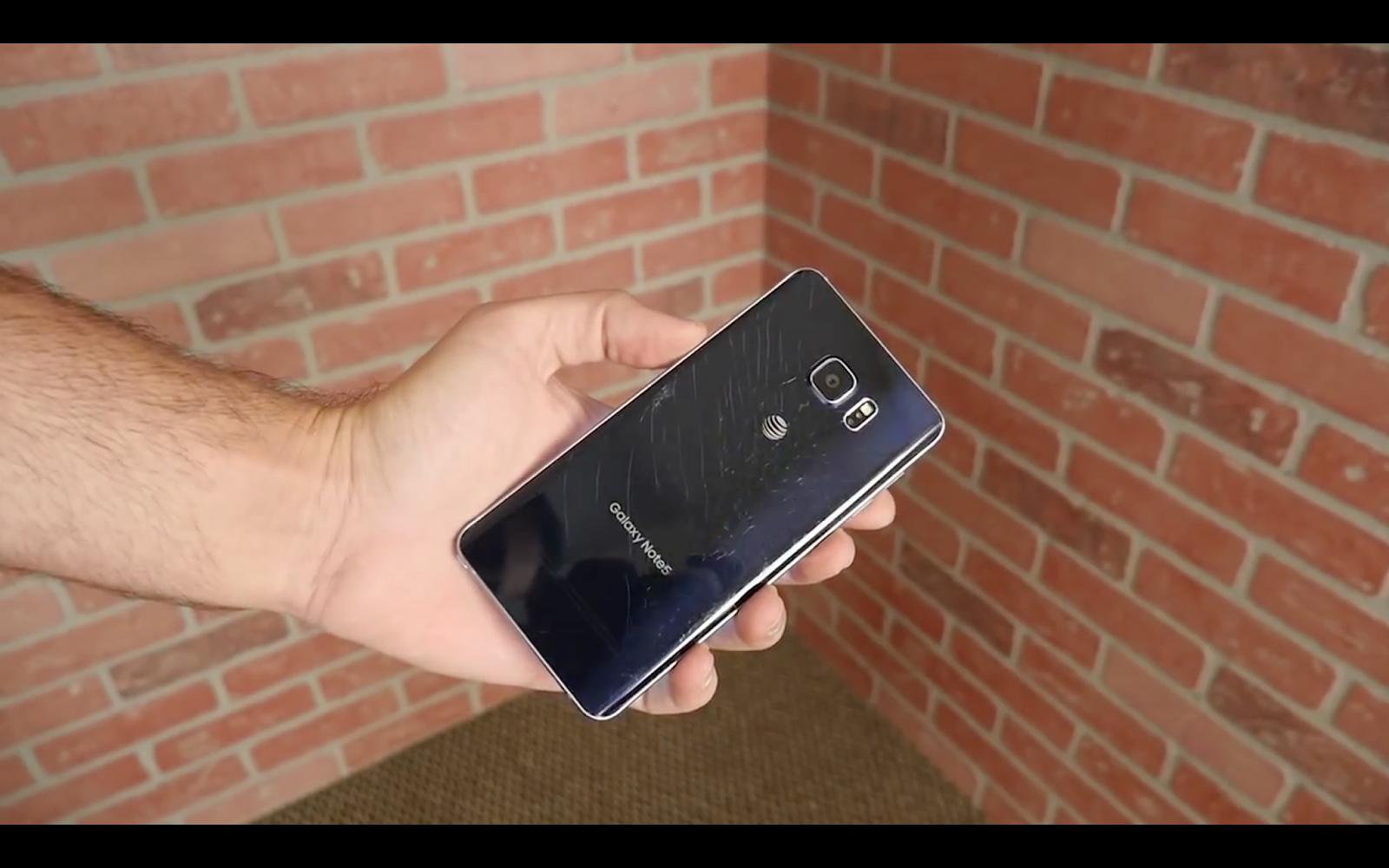 그렇다면 갤럭시노트5는 어떠했을까요? 갤럭시노트5는 '폰 버프'에서 실험을 진행했는데, 후면, 측면, 전면 순서로 드롭 테스트를 진행했습니다 ▼
