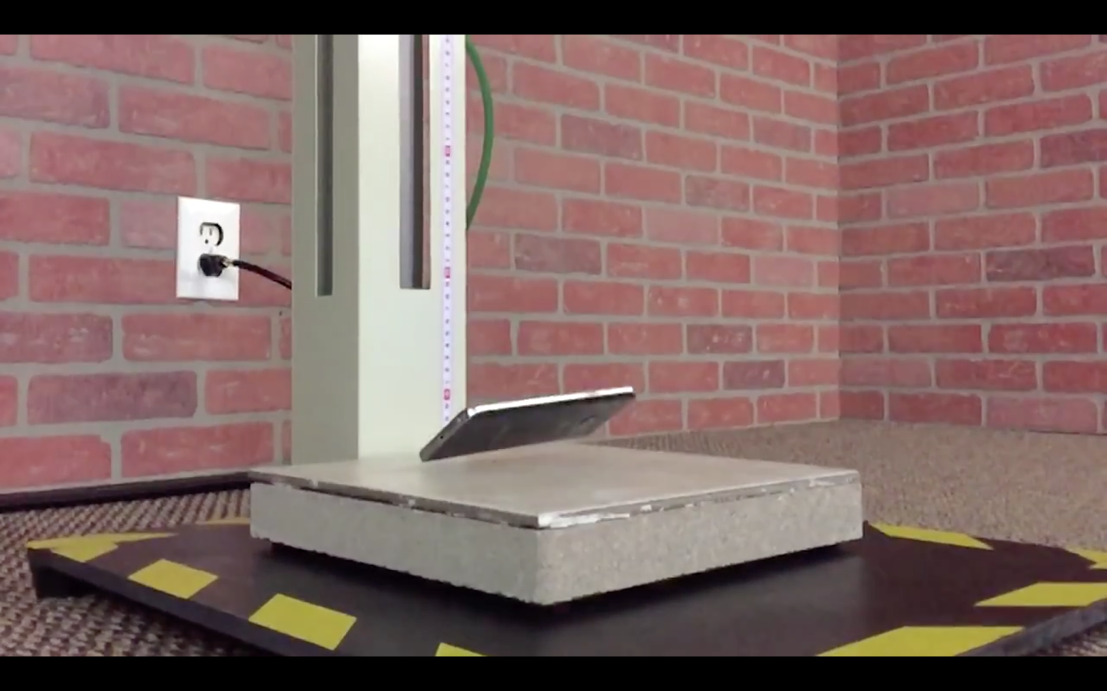 이후에도 테스트는 계속되는데요, 이번에는 그냥 떨어뜨리는 것이 아니라 던져 버립니다. 날아서 바닥에 떨어지며 강한 충격을 받는데요 ▼