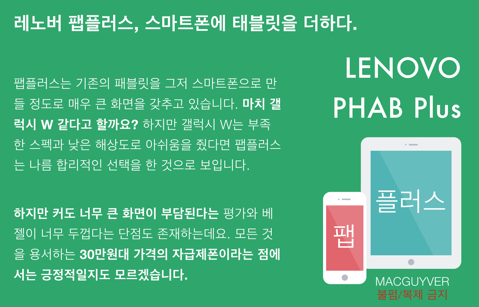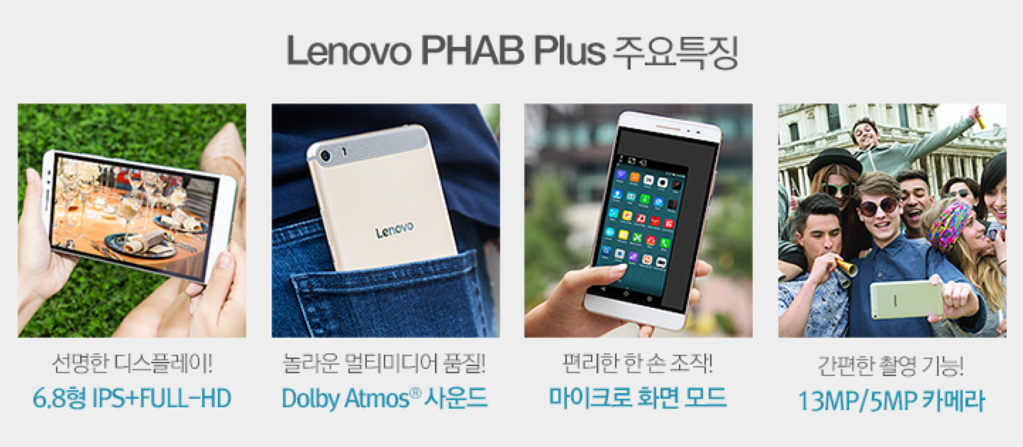 EXID의 하니를 전면에 내세우며 등장한 레노버의 팹플러스는 중저가 시장을 타겟으로 한 초대형 패블릿 제품으로서, 쉽게 범접하기 힘든 6.8인치 즉, 7인치 가까이 되는 스마트폰으로 출시되었습니다.