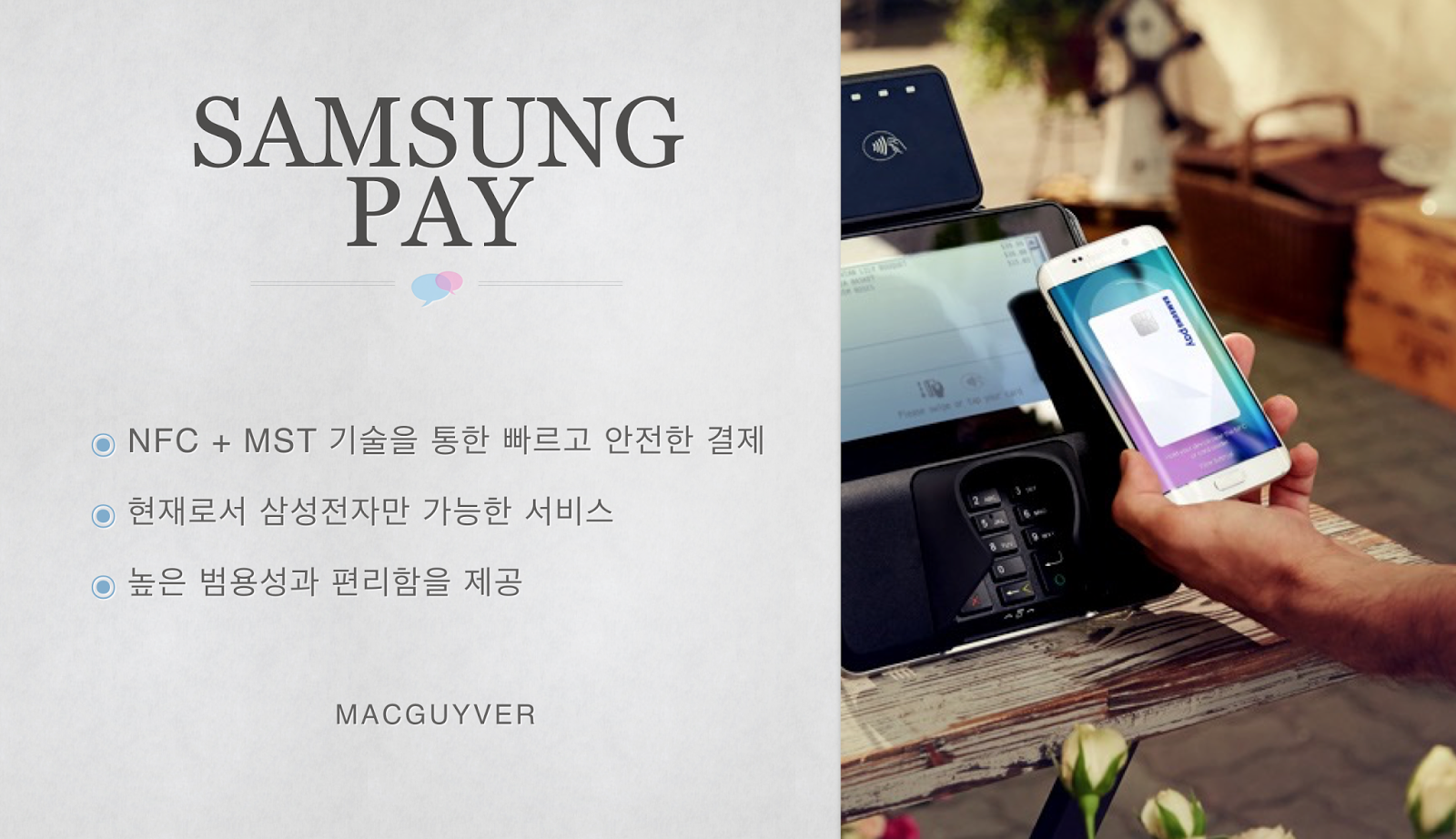 그래서 이 MST 방식과 NFC를 모두 접목한 삼성페이는 광범위한 범용성으로 ‘지금 바로 사용이 가능한’ 페이가 되었는데요. 애플페이를 비롯한 타 회사들은 이러한 기술이 빠진 NFC에만 의존하다보니 시장 확대에 한계가 있는 상황입니다.