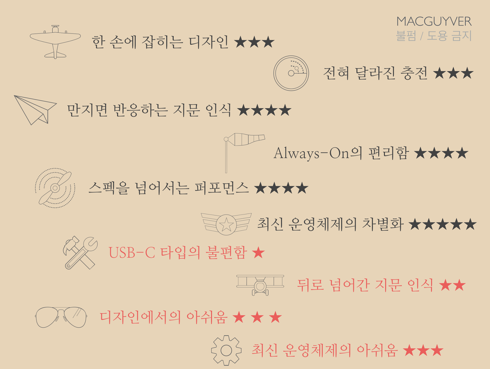 그래서 넥서스5X에 대한 개인적인 평가는 별 4개를 줄 수 있을 것 같습니다. 충분히 쓸만하면서도 부담이 적은 폰, 튀어 보이려고 쓸데 없는 기능을 억지로 넣지 않는 깔끔한 폰으로서 넥서스5X는 분명 좋은 폰임에 틀림이 없어 보입니다. 이상, 맥가이버였습니다 :)