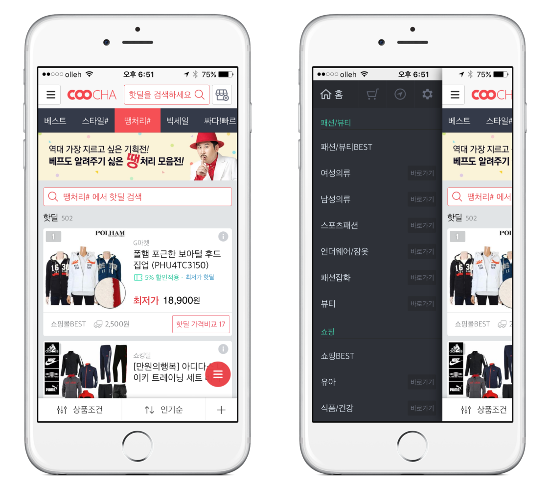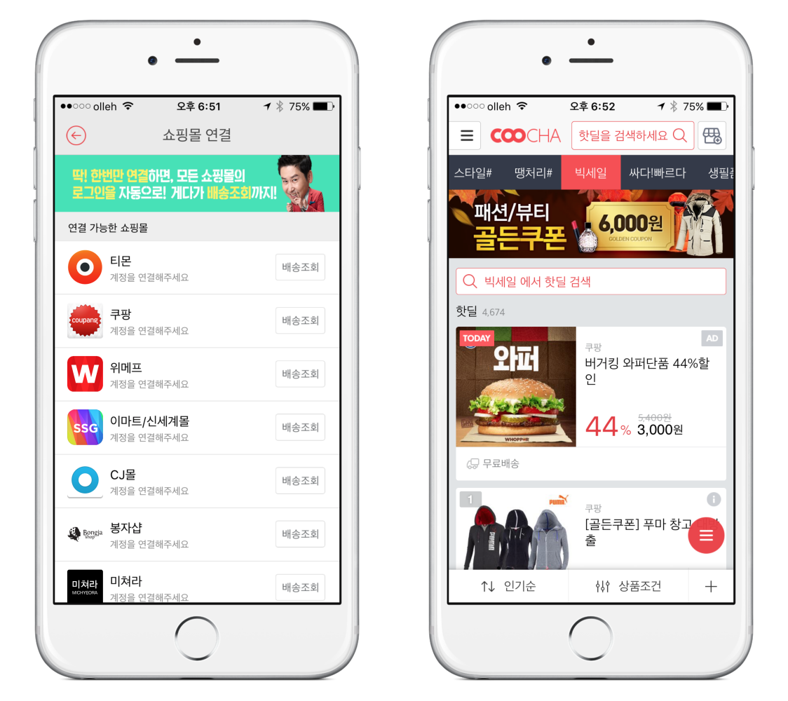 이전에는 쿠팡 따로, 티몬 따로, 11번가 따로 이용했다면 쿠차를 통해서 한방에 가격 비교가 가능해서 소셜 커머스의 왕으로 불리고 있는데요. 한 방에 검색해서 원하는 가격으로 구입이 가능하기 때문에 간편함으로도 앞서나가고 있습니다.