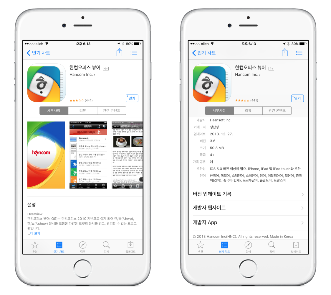 한컴오피스 뷰어 App : 아이폰용 다운 / 안드로이드폰용 다운