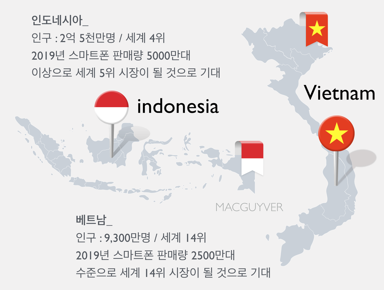 인도네시아는 향후 2019년 이후, 전세계 스마트폰 시장 5위에 이르는 큰 시장이 될 것으로 기대가 되고 있습니다. 또한 베트남을 비롯한 다른 동남아 국가들도 큰 성장을 보일 것으로 보입니다.