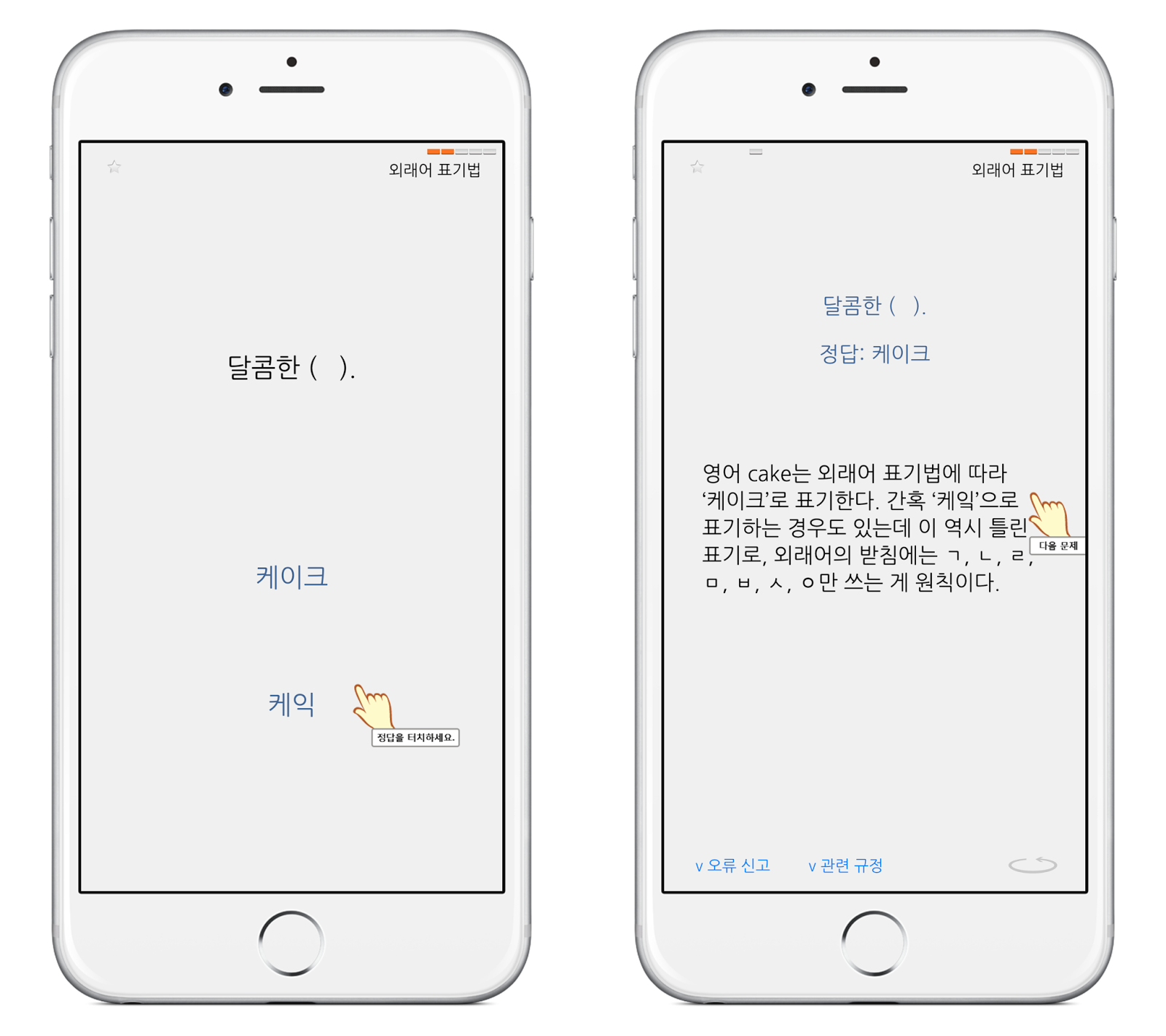 그런점에서 우리말 공부 앱은 기본이라고 볼 수 있습니다. 정말 쉬워서 초등학생도 풀 수 있을 정도의 우리말 공부가 아닌, 정말 평소에도 맞는 말인지 아닌지 답을 찾기 어려운 문제들을 위주로 구성되어 있습니다.