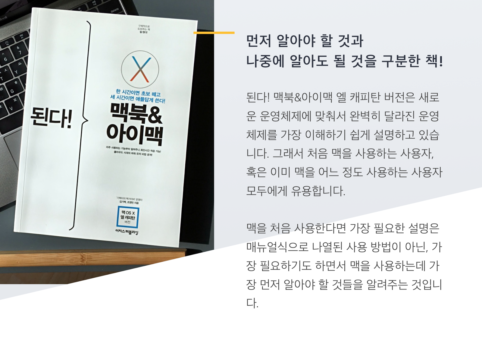 하지만 새로운 운영체제가 나오면 그에 따른 새로운 기능들을 익히고, 더욱 편리해진 기능들에 익숙해질 필요가 있습니다. 그래서 된다! 맥북&아이맥은 가장 빠르게 엘 캐피탄을 적용한 새로운 개정판을 선보였습니다.