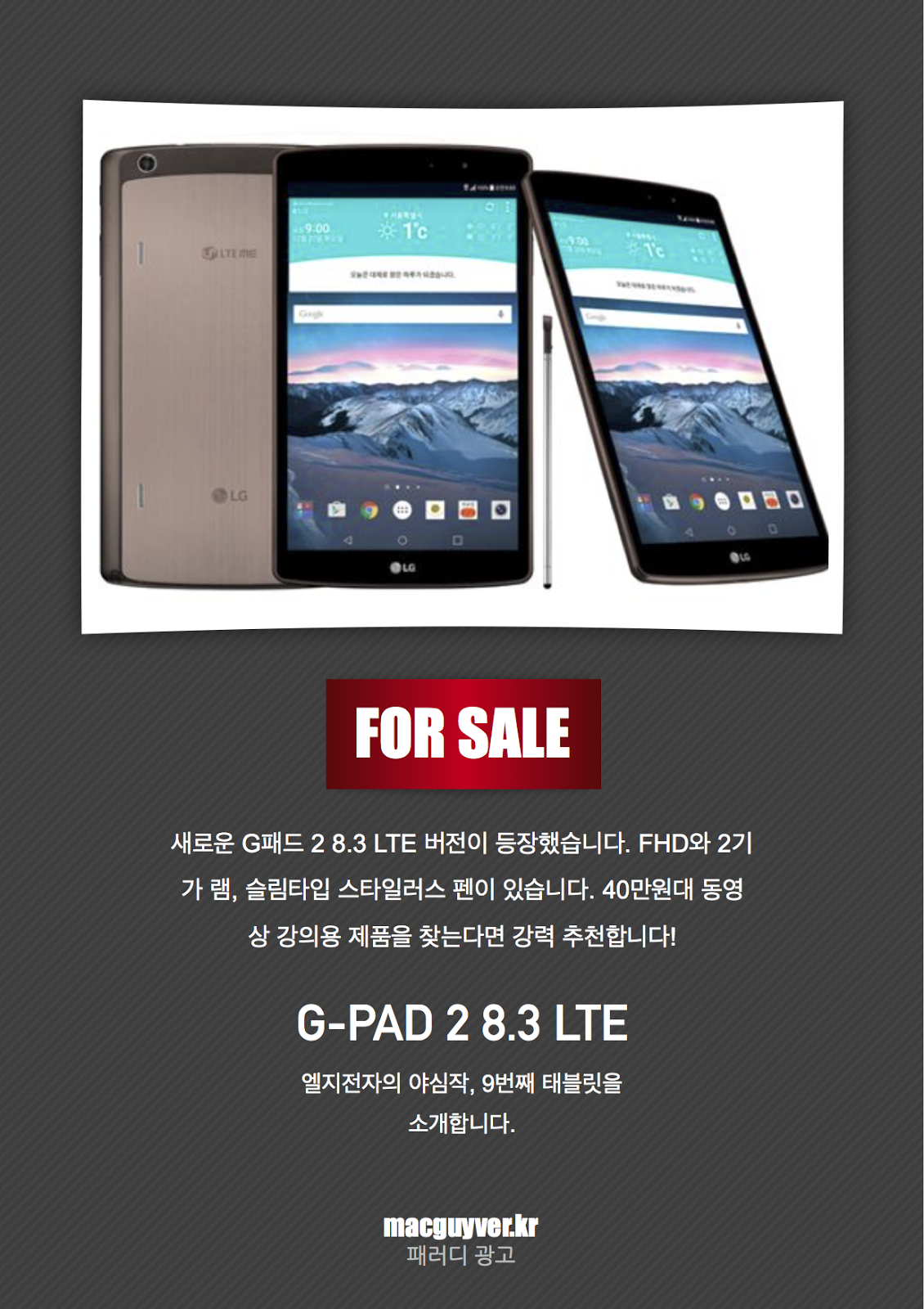 애플이 연필 한 자루만을 놓고서 그것을 레이저로 절삭한 다음 더 얇아진 아이패드 에어2를 선보이던 그러한 강렬한 한 방이 없는 것입니다. 현재 G패드 2 8.3 LTE의 출시를 절대다수의 소비자들은 모르고 있습니다.