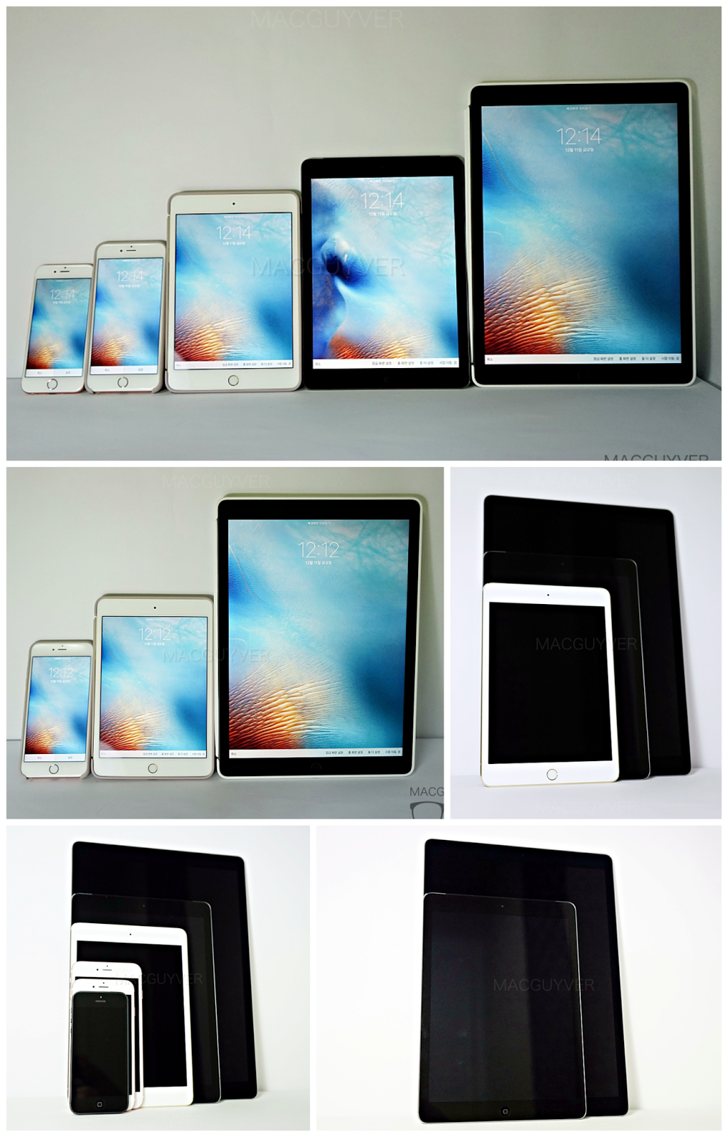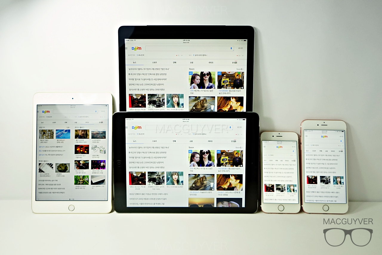 아이패드 프로부터 아이폰까지 모두 비교해본 모습, 이제 애플도 매우 다양한 화면 크기를 보유하고 있습니다. 자신에게 맞는 제품을 고르면 되겠네요. 일반적으로는 아이폰6s와 아이패드 에어2의 조합을 선호하고 있지만 저는 아이폰6s와 아이패드 프로의 조합으로 작은 아이폰과 가장 큰 아이패드를 사용하고 있습니다 ▼