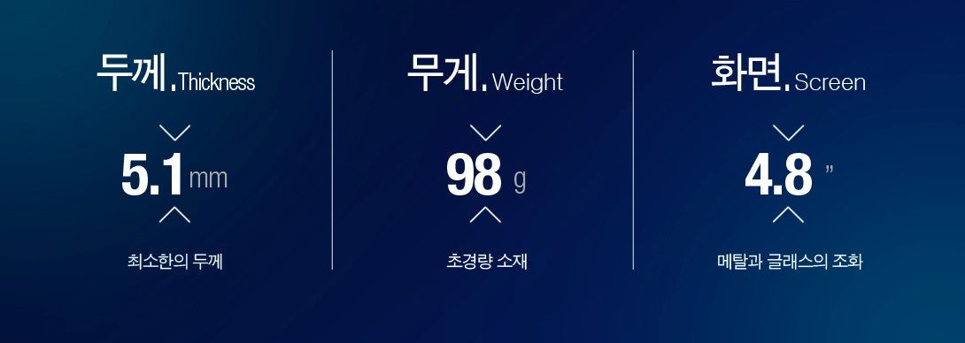 또한 기기가 얇고 작은 만큼 무게도 매우 가볍습니다. 겨우 98g으로서 부담 없는 무게를 가지고 있기 때문에 최신 스마트폰과는 달리 휴대성을 극대화할 수 있다는 장점을 가진 제품이기도 합니다.