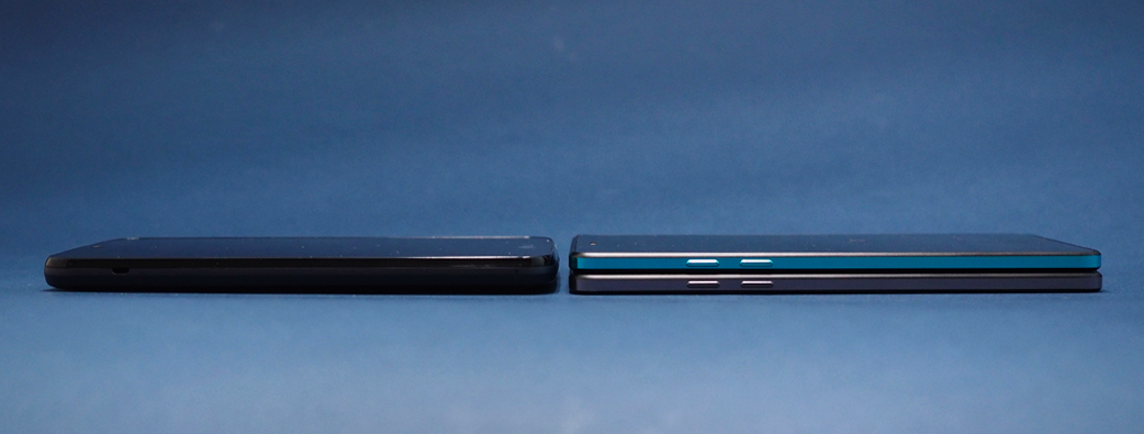 엘지의 AKA 스마트폰과 비교하면 1/2에 불과한 매우 슬림한 두께를 가지고 있습니다 ▼