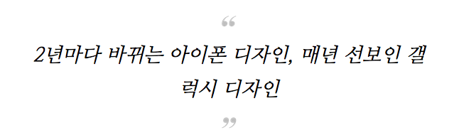 완성형에 가까운 이 디자인을 삼성은 자신만의 아이덴티티로 이어나가려 하는데, 소비자들은 또 다른 새로움을 찾았던 것입니다. 기존의 삼성전자가 그러했듯 이번에도 다른 디자인을 선보일 것이라고만 믿은 것이죠. 물론 고급스러운 재질은 유지하더라도 디자인에서 놀라움을 줄 것을 기대한 것입니다.