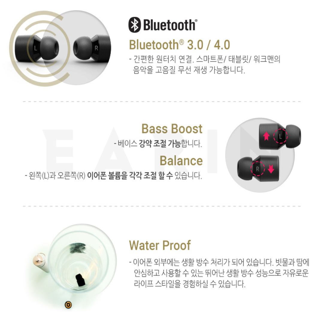 또한 이러한 음질 못지않게 중요한 것은 ‘배터리’인데, 이어린은 블루투스 4.0을 통해 배터리를 절약하고 있다. 블루투스 3.0과 4.0을 동시에 지원하며 다양한 기기와 호환이 되고 저전력을 구현한 것이다.