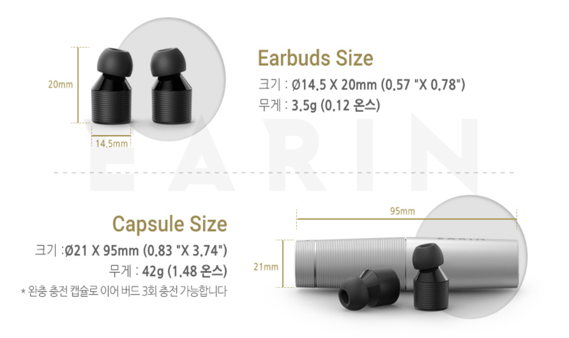 더구나 이어린은 다소 특이한 캡슐 방식의 충전을 지원하고 있는데, 매우 작은 이어린을 캡슐 속에 넣어서 휴대하는 동시에 이 캡슐이 충전기 역할을 한다. 이어린을 최대 3회까지 자체 충전이 가능하다고.