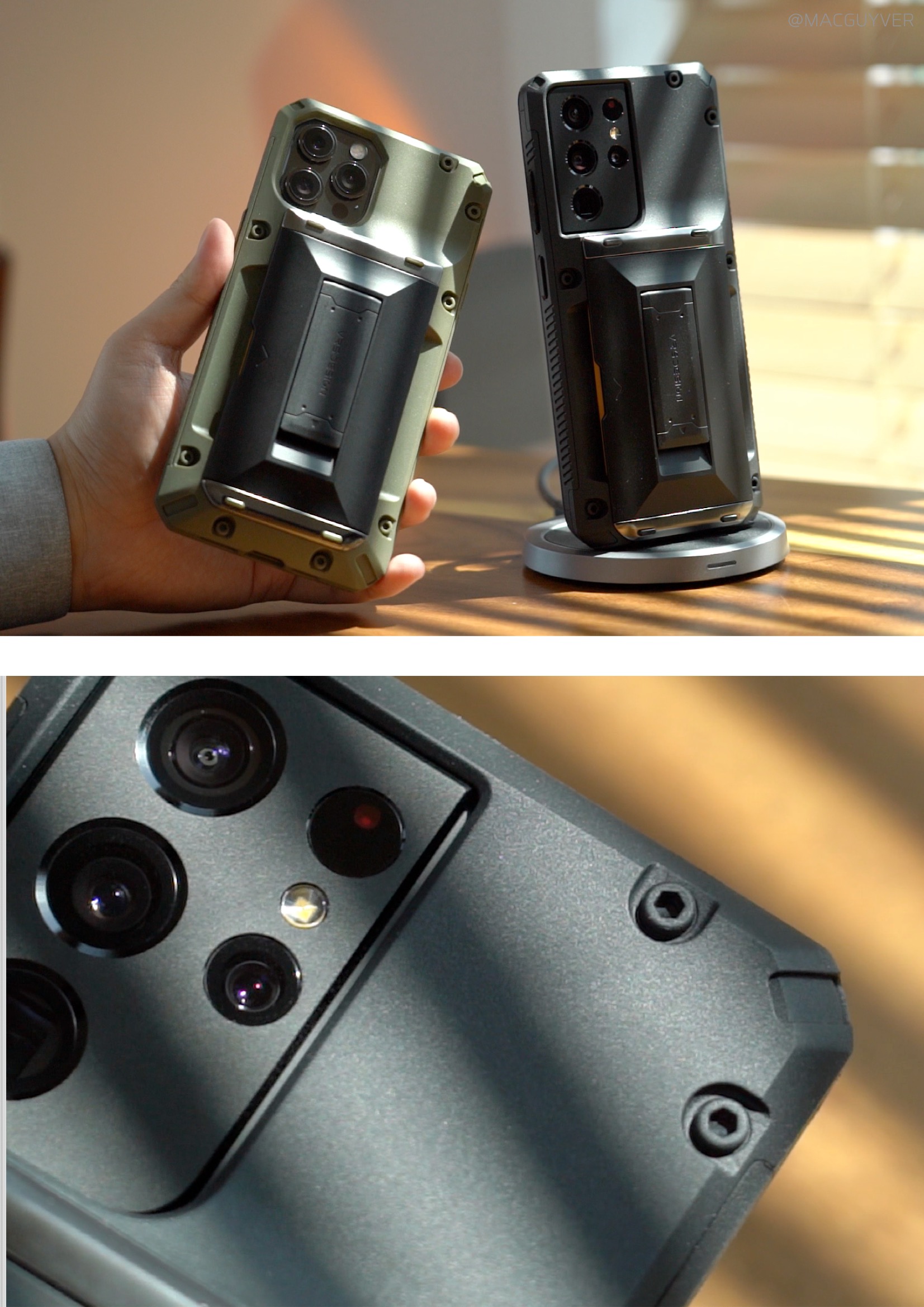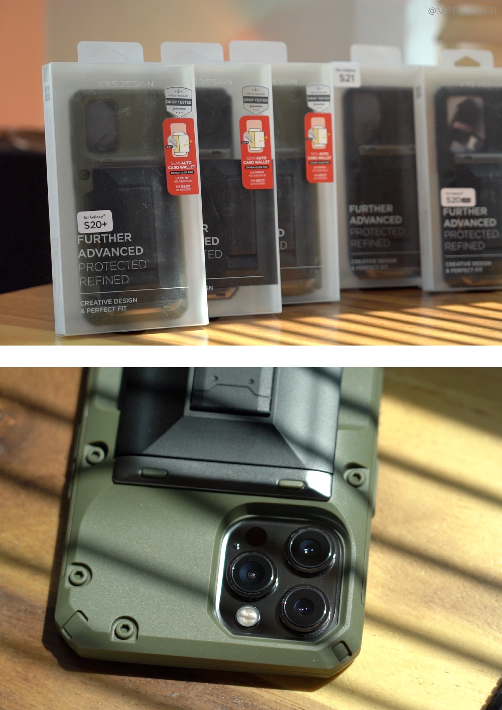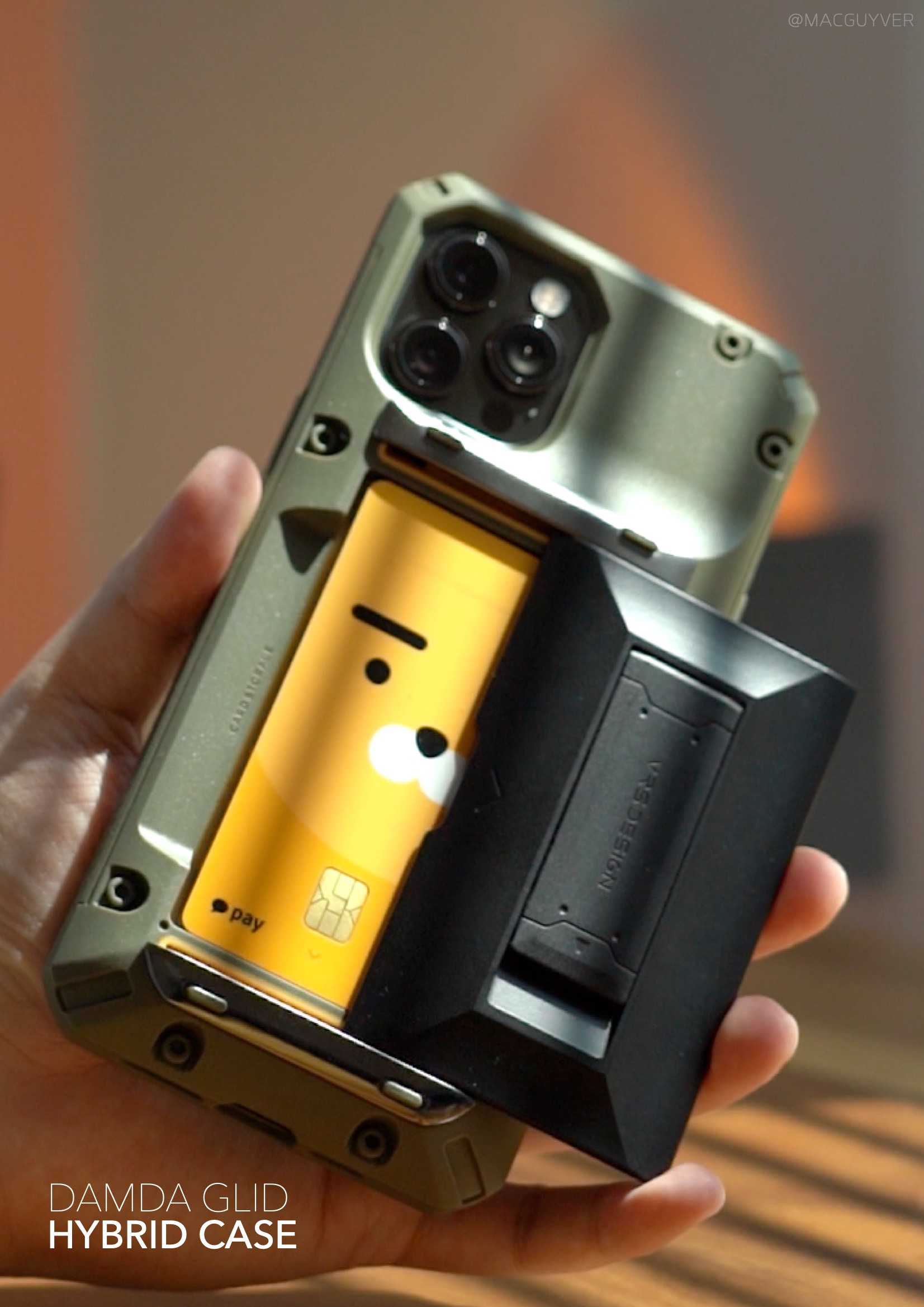 #. 아이폰12 케이스 Use 확실히 호불호가 명확한 러기드한 느낌의 베루스 담다글라이드 하이브리드 케이스는 블랙과 그린 2가지 컬러 선택지가 있었는데요. 일단 전문 장비처럼 보이기도 하는 이 컨셉이 마음에 드는 분들이라면, 다양하게 파티션을 나눈 것 같은 디자인이나 나사 안쪽의 유광 코팅이 진짜처럼 보이는 디테일도 눈에 띌 것 같아요. 그래서 S21 울트라나 아이폰12 시리즈와도 잘 어울려서 투머치로 보였던 카메라를 오히려 자연스럽게 어울리는 케이스로 커버할 수 있더라고요. 만져보면 딱히 거칠게 걸리는 곳은 없고, 먼지도 잘 안 묻는데다 매트하면서도 매끈한 손맛이 부들부들했어요.