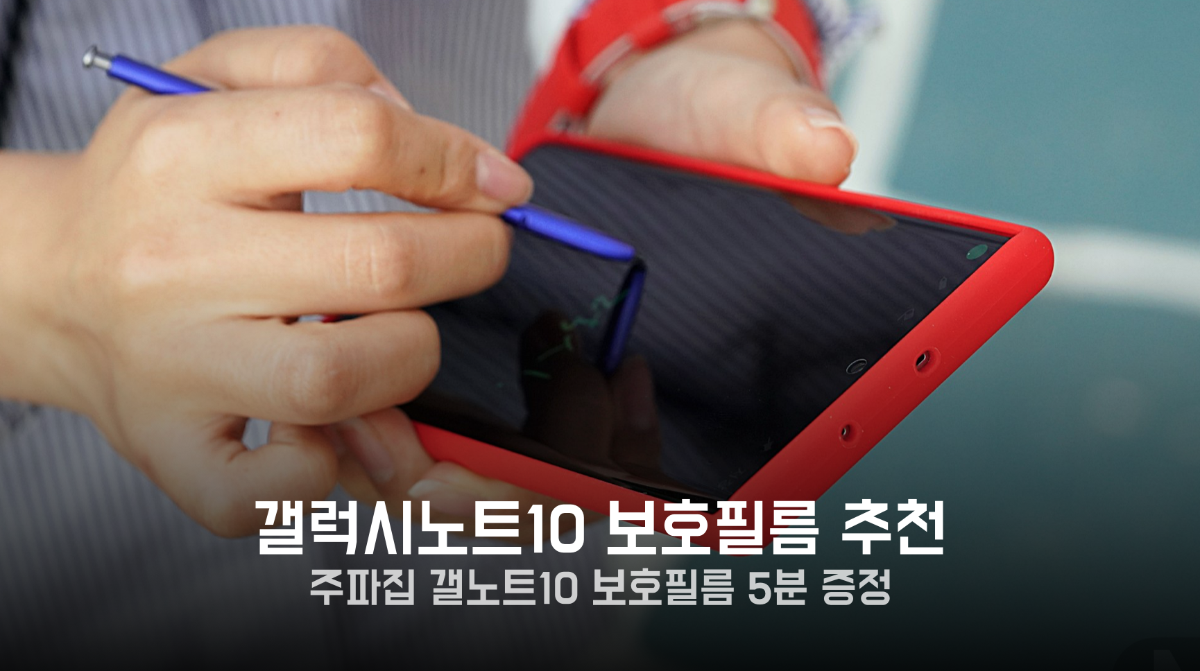 ✎ 1+1 구성에 PET 소재를 지닌 주파집 갤노트10 보호필름