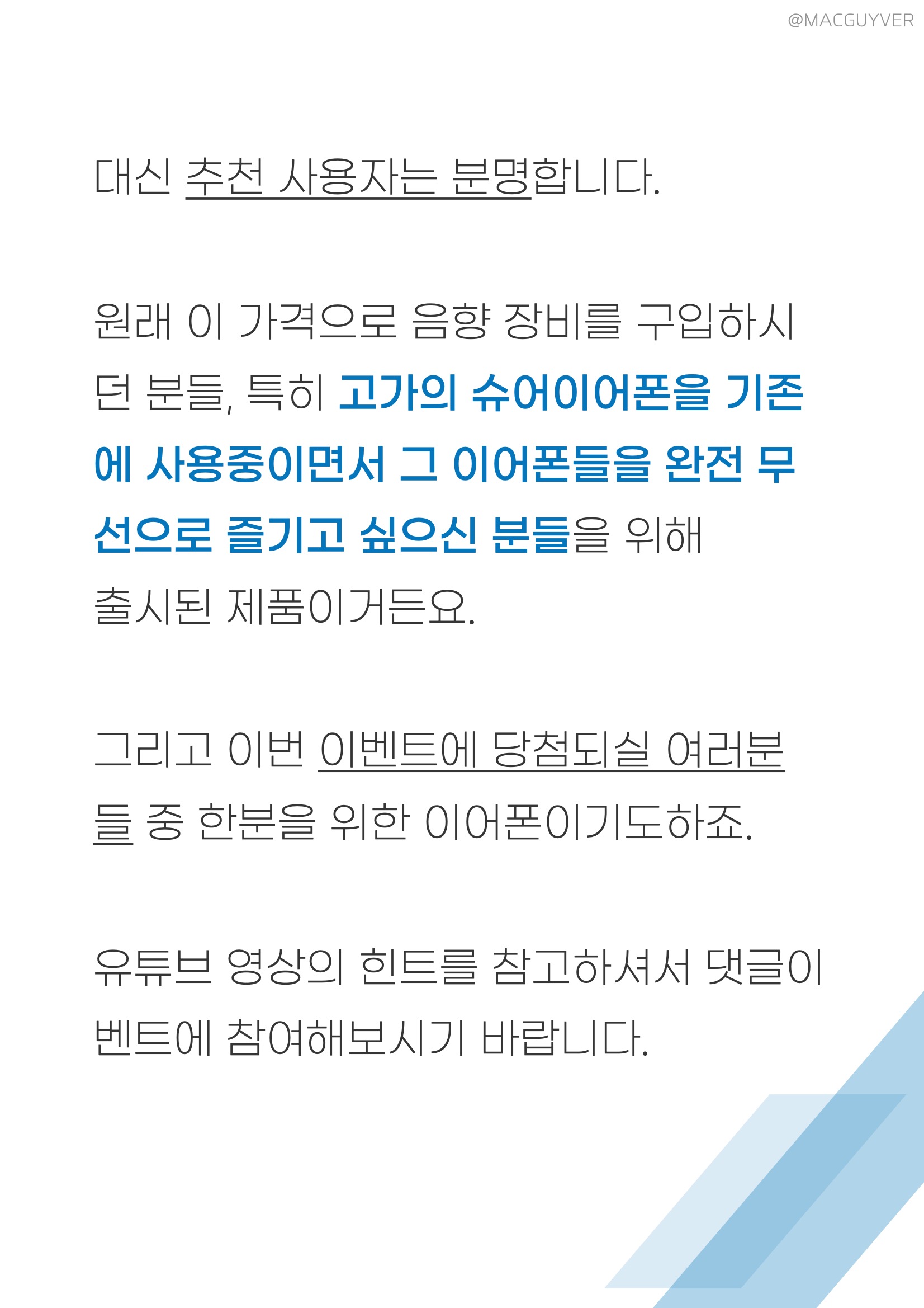 증정 이벤트 :: 오늘 리뷰할 이 슈어 AONIC 215 고음질 무선 이어폰을 1분에게 증정해드릴 수 있게 되었어요. 유튜브 영상을 시청하시면 당첨 힌트가 숨어있으니까, 관심있는 분들은 참여해보시기 바랍니다.